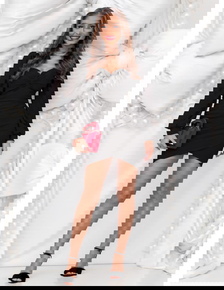 Czarna sukienka z dekoltem w serce i marszczeniem z boku Charcee to idealny wybór na wiele okazji. Świetnie sprawdzi się podczas świątecznych spotkań, kolacji, randek czy wieczornych wyjść.