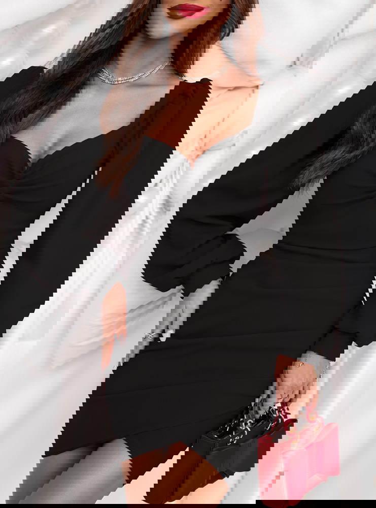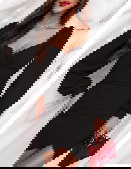 Czarna sukienka na święta z dekoltem w serce i marszczeniem z boku Charcee