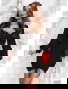Czarna sukienka z dekoltem w serce i marszczeniem z boku Charcee to połączenie elegancji, kobiecości i subtelnego wdzięku. Jej klasyczny odcień nadaje stylizacji ponadczasowego charakteru, a dopasowany krój pięknie podkreśla figurę. Dekolt w kształcie serca delikatnie eksponuje szyję i obojczyki, dodając całości zmysłowego, ale wciąż eleganckiego efektu. Marszczenie z boku optycznie modeluje sylwetkę, podkreślając talię i nadając całości lekkości. Długie rękawy dodają szyku i idealnie równoważą krótszy fason, dzięki czemu sukienka wygląda stylowo i harmonijnie. To model, który przyciąga uwagę prostotą formy i dopracowanymi detalami. Czarna sukienka w tym wydaniu to klasyka, która nigdy nie wychodzi z mody – idealna na chłodniejsze, jesienno-zimowe dni. Każdy jej element został zaprojektowany tak, by podkreślać kobiecy urok z klasą i subtelnością. To propozycja dla kobiet, które lubią wyglądać elegancko, ale bez przesadnego przepychu.