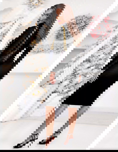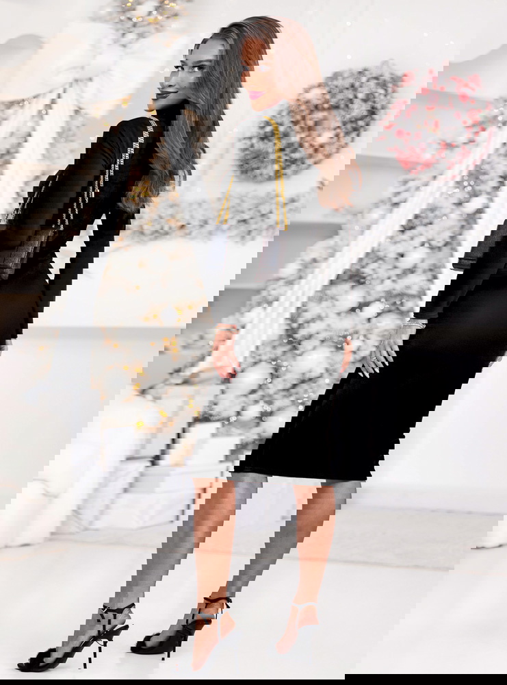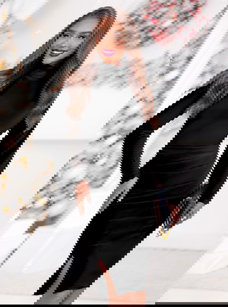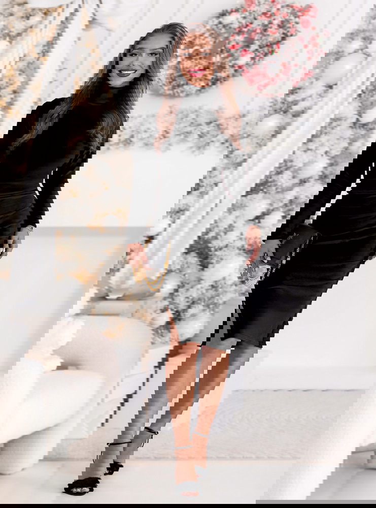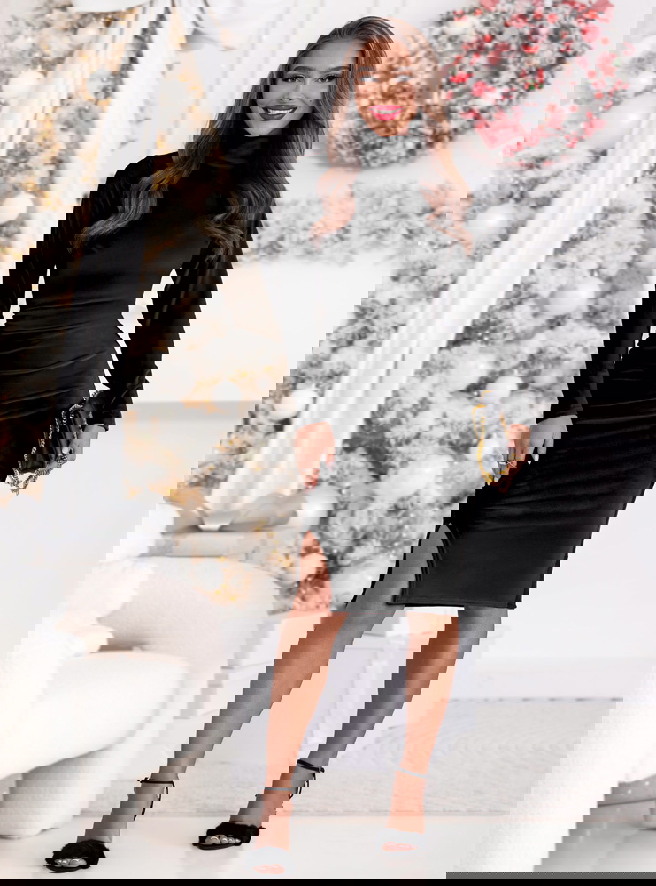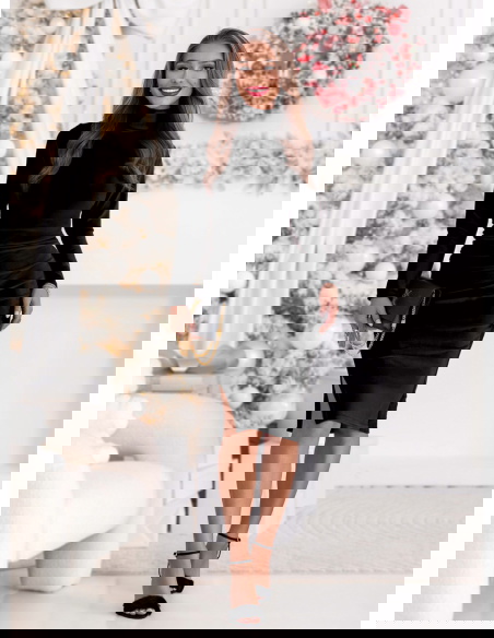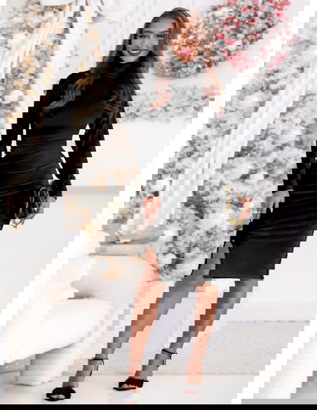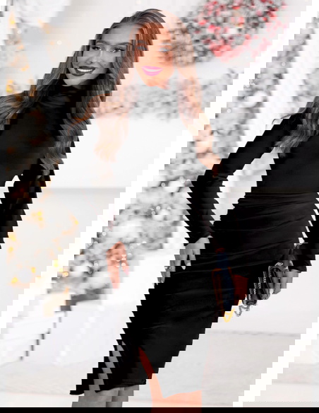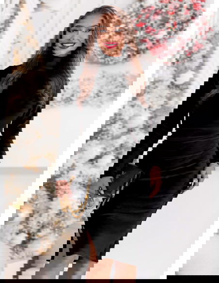 Czarna welurowa sukienka z rozcięciem Lorelie to elegancja w najbardziej klasycznym i kobiecym wydaniu. Jej dopasowany fason podkreśla figurę, a miękkie wykończenie nadaje całości subtelnego blasku. To model, który łączy w sobie wyrafinowany szyk z nutą zmysłowości, idealny na sezon jesienno-zimowy. Długość mini oraz delikatne rozcięcie dodają sukience lekkości i wdzięku, jednocześnie pozostając niezwykle eleganckie. Zabudowany dekolt z golfem równoważy całość, tworząc stylizację pełną klasy i harmonii. To sukienka, która pięknie prezentuje się zarówno w świetle dziennym, jak i wieczornym, podkreślając kobiecy urok i pewność siebie. Czerń w welurowym wydaniu zachwyca głębią i nadaje stylizacji luksusowego charakteru. Każdy detal został zaprojektowany tak, aby wydobyć z tej sukienki maksimum elegancji. To ponadczasowy model, który zawsze wygląda stylowo, niezależnie od okazji.