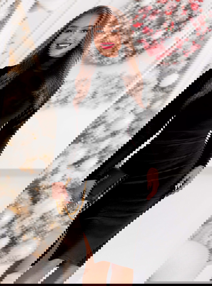 Czarna welurowa sukienka z rozcięciem Lorelie to idealne połączenie klasyki i nowoczesnego stylu. Welurowe wykończenie nadaje jej głębi i elegancji, a dopasowany krój pięknie modeluje sylwetkę.