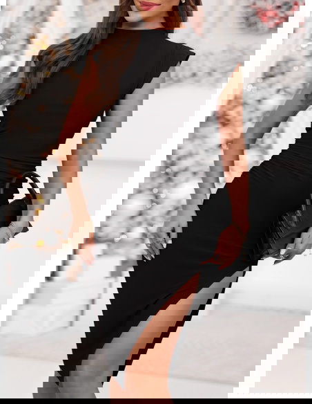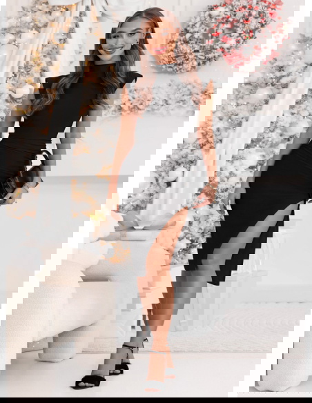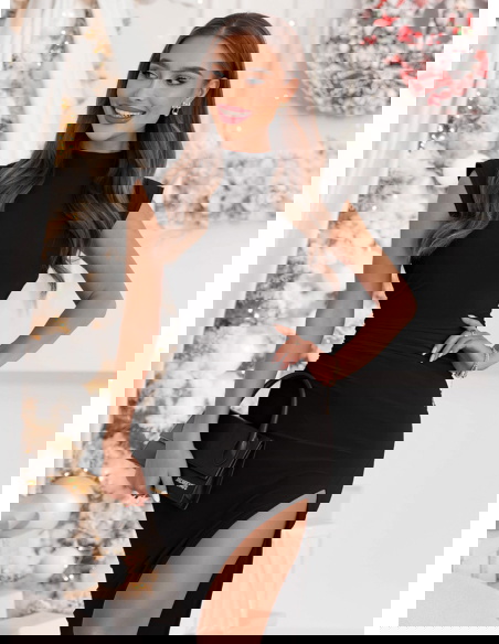 Czarna dopasowana świąteczna sukienka z marszczeniem w talii Myleen