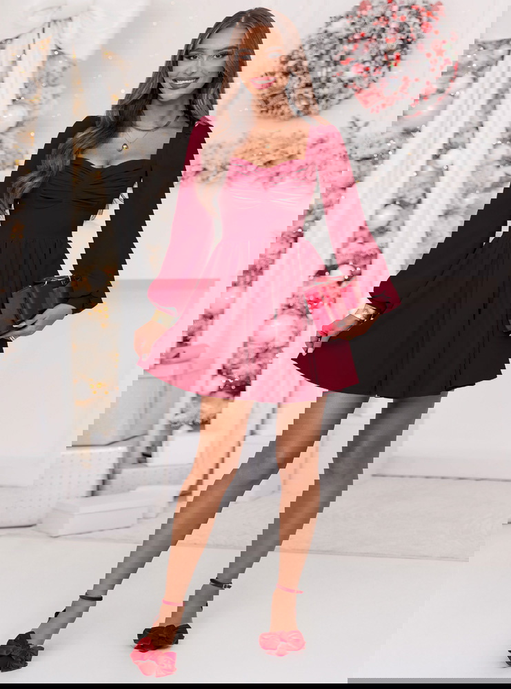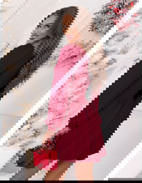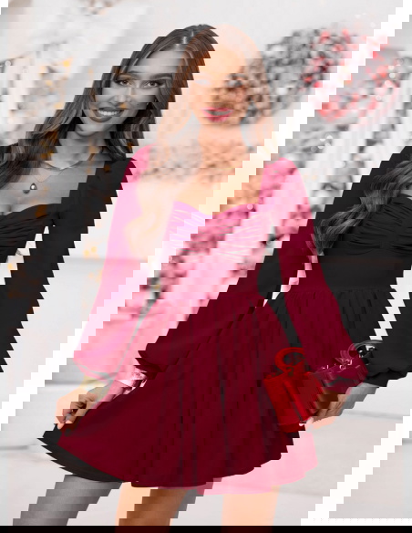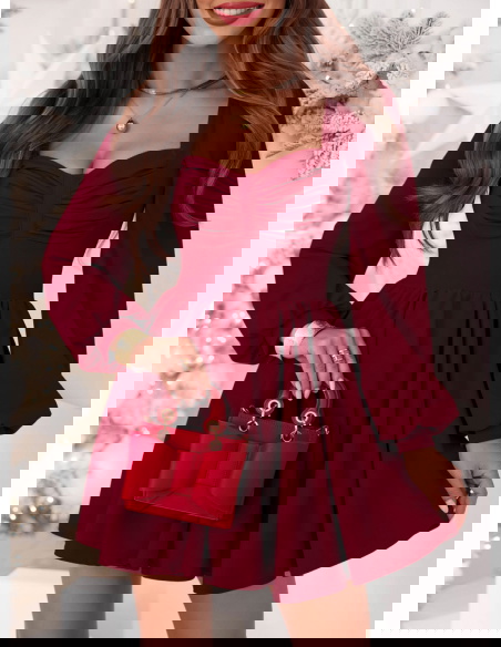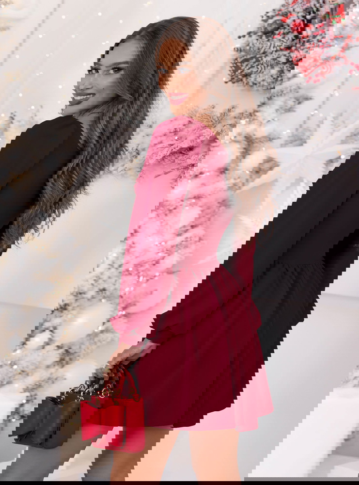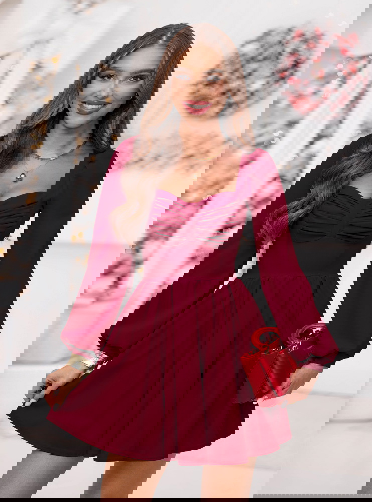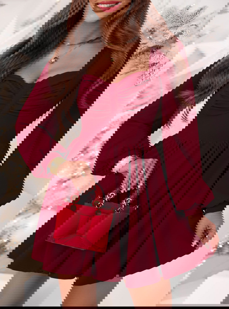 Bordowa rozkloszowana sukienka z bufiastymi rękawami Melaina to idealna propozycja na świąteczne przyjęcia, uroczyste kolacje, rodzinne spotkania czy romantyczne randki. Sprawdzi się również podczas zimowych przyjęć lub wyjątkowych wieczorów.