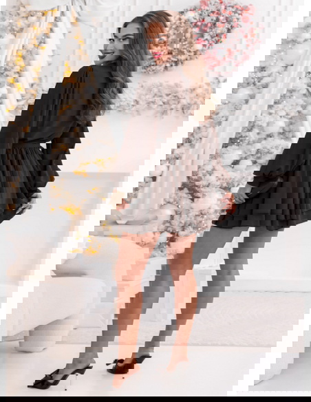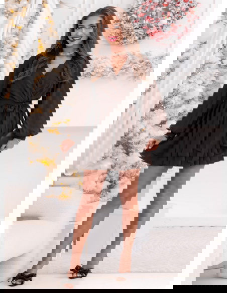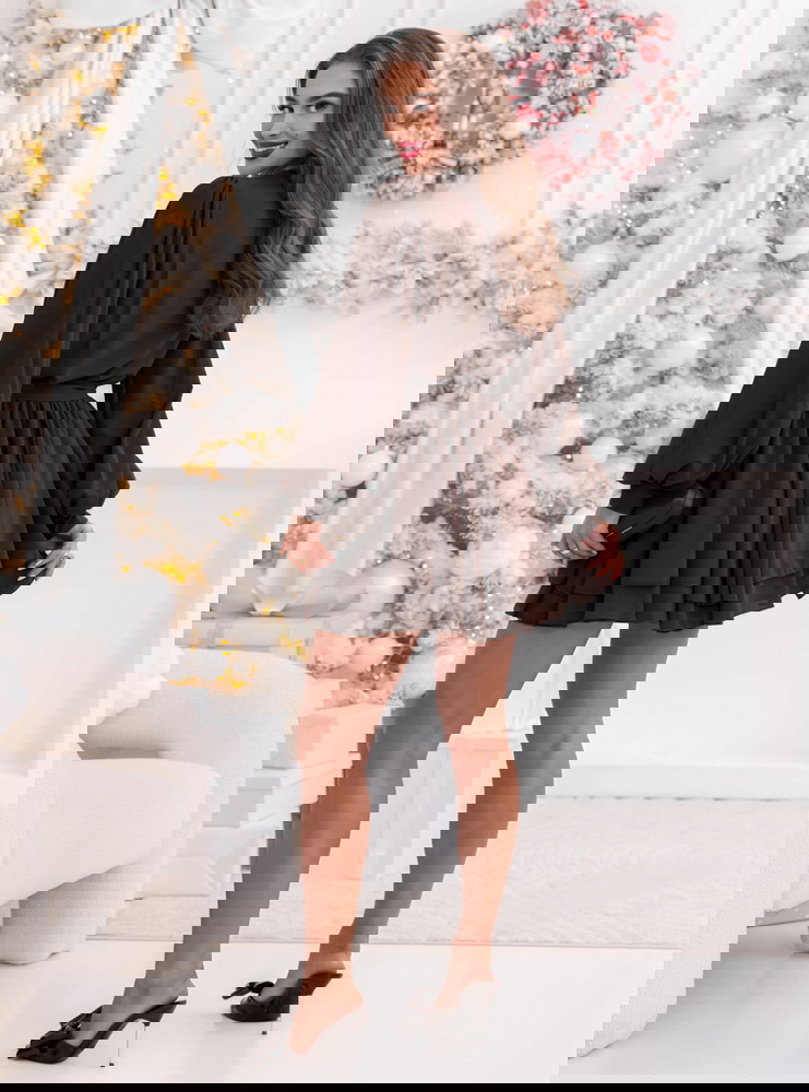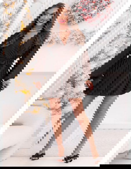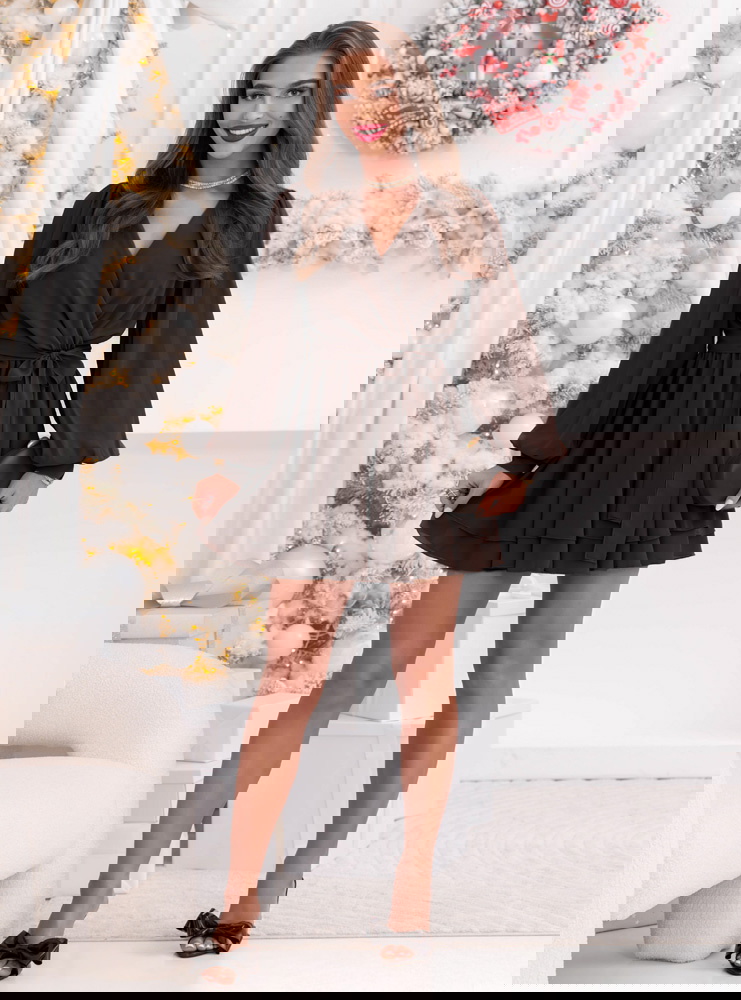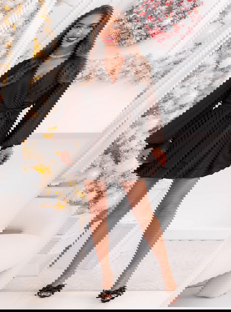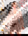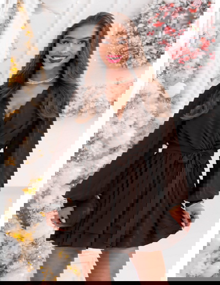 Czekoladowa szyfonowa sukienka mini z przekładanym dekoltem Demaree to połączenie elegancji, lekkości i kobiecego wdzięku. Jej ciepły, głęboki odcień brązu doskonale komponuje się z zimowym i świątecznym klimatem. To model, który zachwyca subtelnością i ponadczasowym stylem, jednocześnie podkreślając naturalne piękno sylwetki. Przekładany dekolt dodaje romantycznego uroku i delikatnej zmysłowości, zachowując przy tym klasę i elegancję. Zwiewny krój pięknie układa się w ruchu, nadając stylizacji lekkości i wdzięku. To propozycja idealna dla kobiet, które lubią wyglądać stylowo, a przy tym czuć się swobodnie. Długie, luźne rękawy wprowadzają nutę wyrafinowania i doskonale dopełniają całość. Wiązanie w talii podkreśla figurę, tworząc kobiecą i harmonijną sylwetkę. To sukienka, która łączy elegancję z naturalną prostotą – idealna na sezon pełen blasku i wyjątkowych chwil.