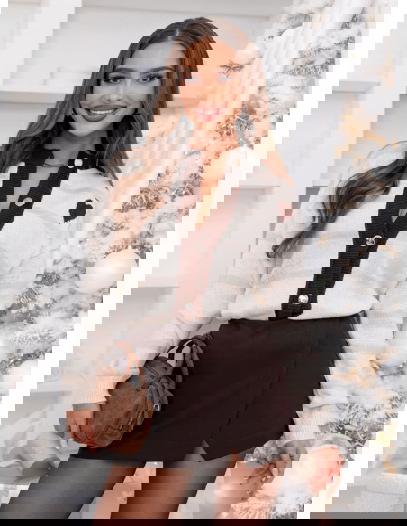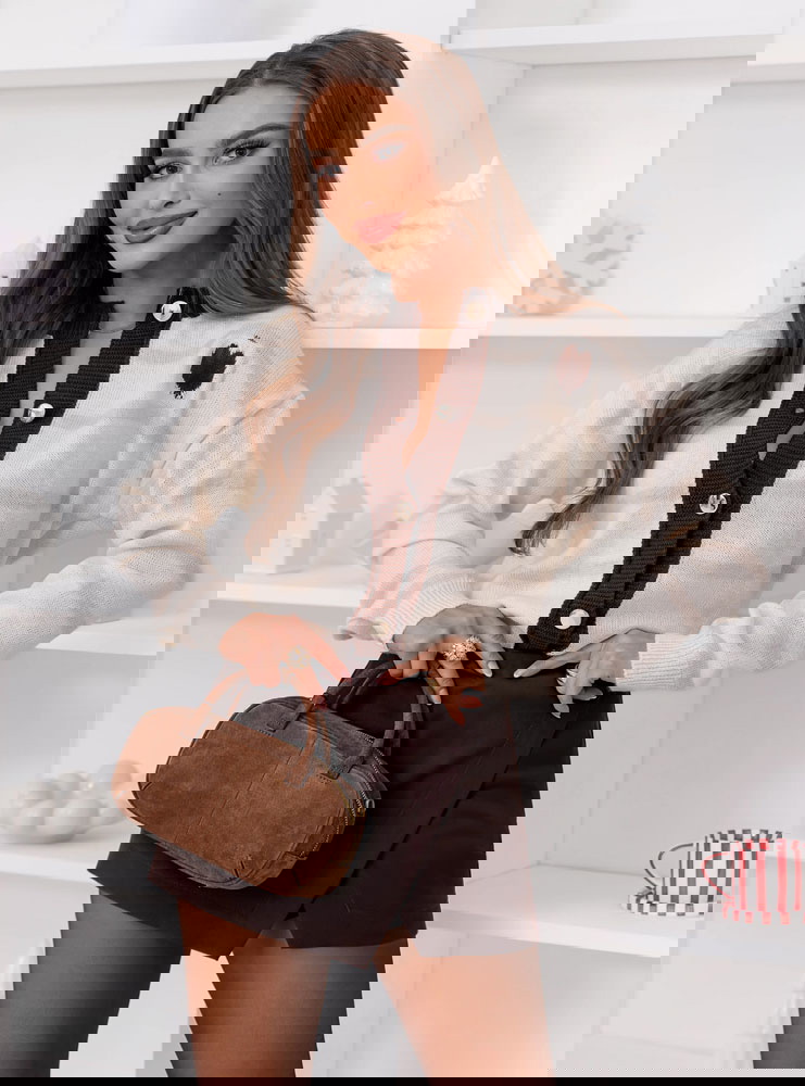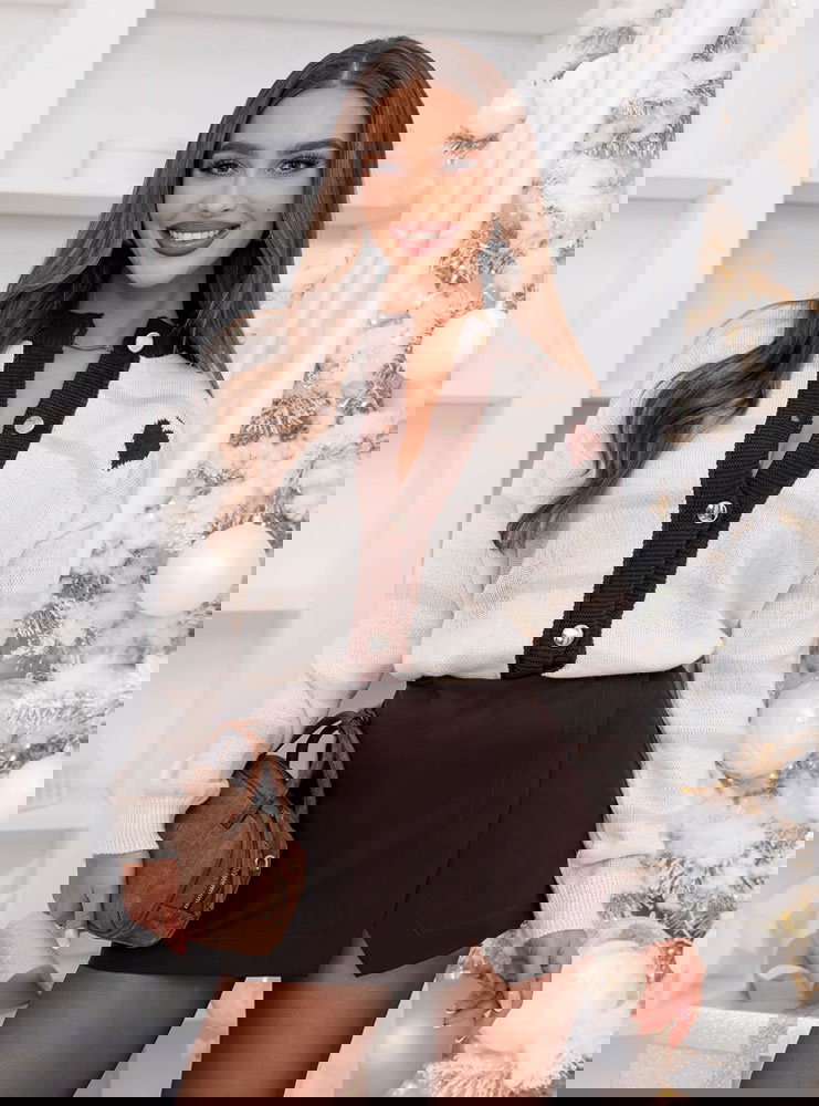 Sweter zapinany na guziki Cherish - wzór 1 to idealna propozycja na chłodniejsze dni, łącząca wygodę z modnym, kobiecym stylem. Jego klasyczny krój sprawia, że pasuje do wielu stylizacji – zarówno casualowych, jak i bardziej eleganckich. Kontrastowe wykończenia i ozdobne guziki dodają mu wyjątkowego charakteru, przyciągając wzrok subtelnymi detalami. To model, który wprowadza do garderoby nutę ciepła i przytulności, zachowując przy tym elegancki wygląd. Jasny odcień z delikatnymi akcentami tworzy harmonijną, stylową całość. Sweter doskonale sprawdzi się zarówno w pracy, jak i na co dzień, gdy chcesz wyglądać modnie i czuć się komfortowo. To ponadczasowy element, który nigdy nie wychodzi z mody.