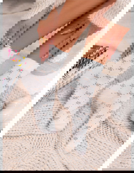 Białe skarpetki z ozdobnym wzorem Simoya doskonale sprawdzą się w chłodniejsze dni, dodając stylizacji delikatności i przyjemnego, przytulnego tonu. Ich uniwersalny wygląd pozwala łatwo dopasować je do wielu zimowych i jesiennych outfitów.