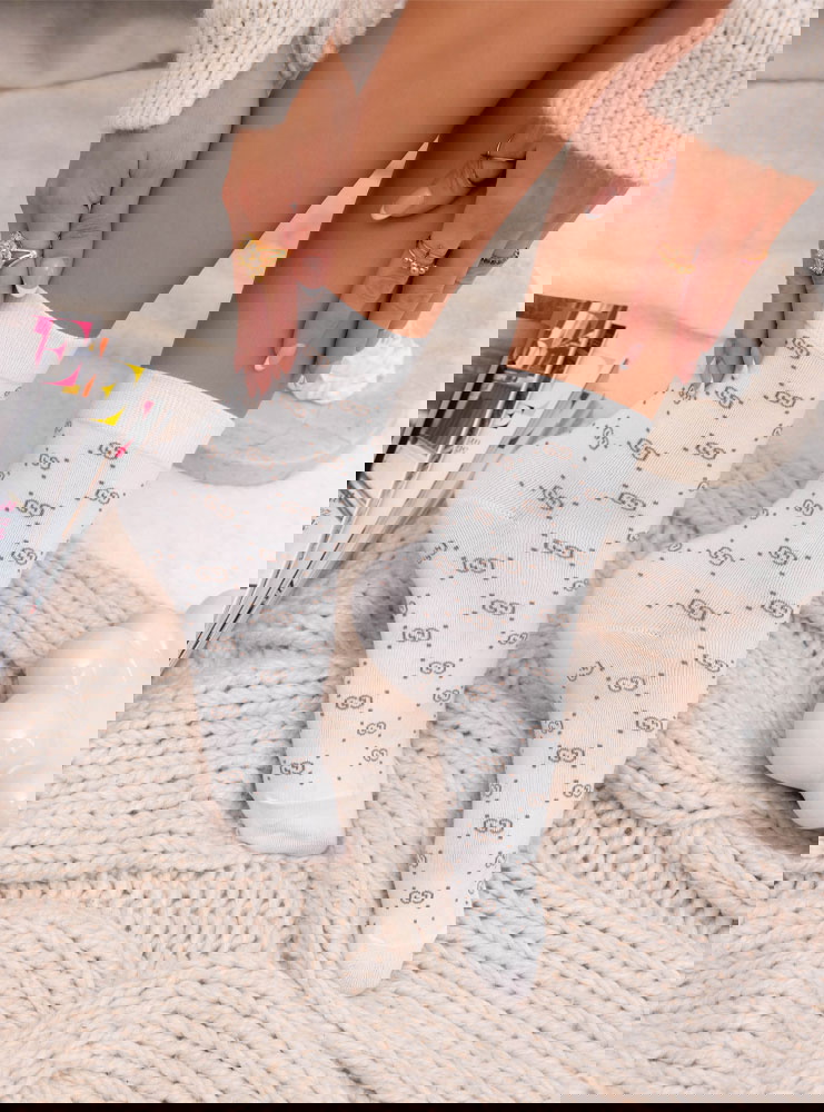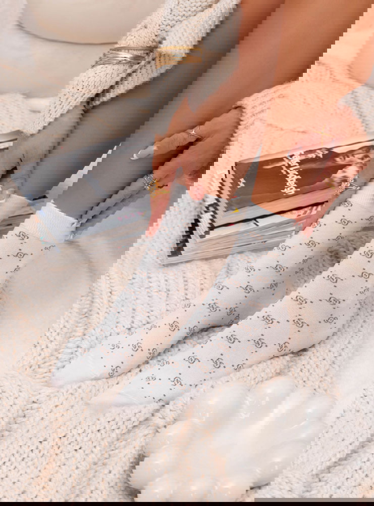 Białe skarpetki z ozdobnym wzorem Simoya to propozycja, która wprowadza do stylizacji subtelną elegancję i delikatny, jesienno-zimowy klimat. Ich jasny odcień pięknie rozświetla całość, nadając lookowi świeżości i lekkości. Ozdobny, drobny motyw sprawia, że prezentują się wyjątkowo kobieco i gustownie. To dodatek, który świetnie podkreśli zarówno codzienne, jak i bardziej dopracowane zestawy. Wystarczy jedno spojrzenie, by zauważyć ich urok i ponadczasowy charakter.