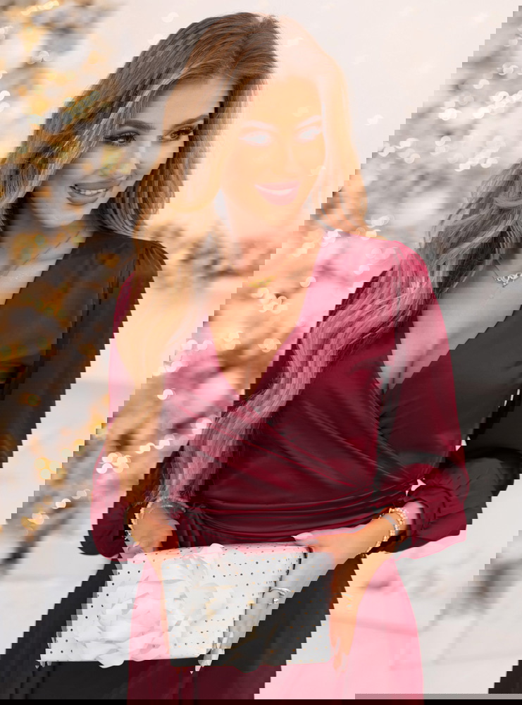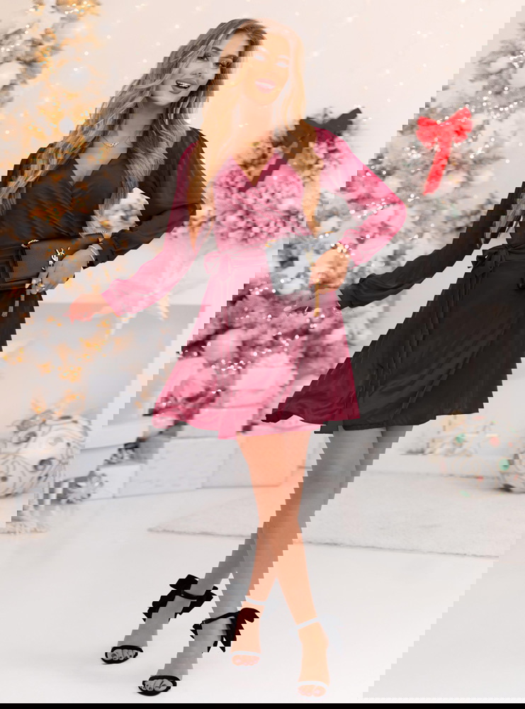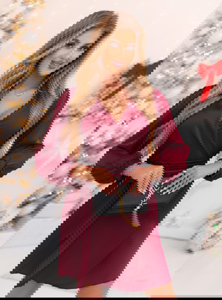 Bordowa satynowa sukienka przekładana z dekoltem Ludisya to elegancka i kobieca propozycja, która doskonale sprawdzi się w sezonie jesienno-zimowym. Jej głęboki kolor i subtelny połysk sprawiają, że wygląda niezwykle szykownie i zmysłowo. Kopertowy krój z delikatnym wiązaniem w talii pięknie podkreśla sylwetkę i nadaje całości lekkości. Długie rękawy zakończone mankietem dodają klasy i tworzą harmonijny balans między elegancją a wygodą. To model, który łączy w sobie prostotę i efektowność w idealnych proporcjach. Satynowa tkanina delikatnie układa się na ciele, tworząc niezwykle kobiecy efekt. To sukienka, która idealnie wpisuje się w klimat świątecznych i zimowych spotkań, dodając im wyjątkowego charakteru.