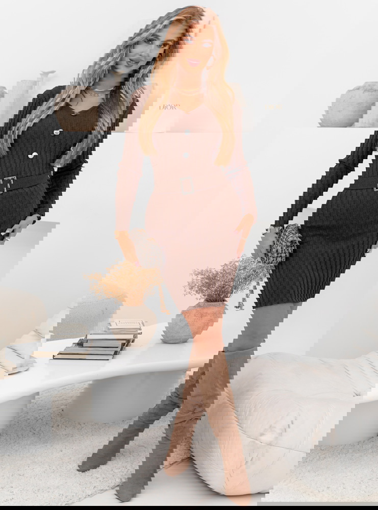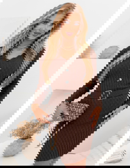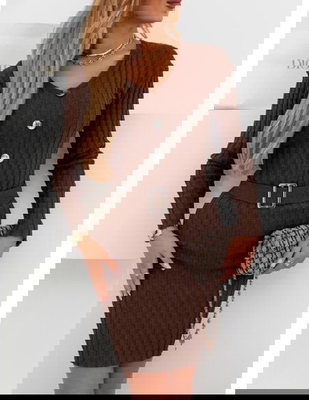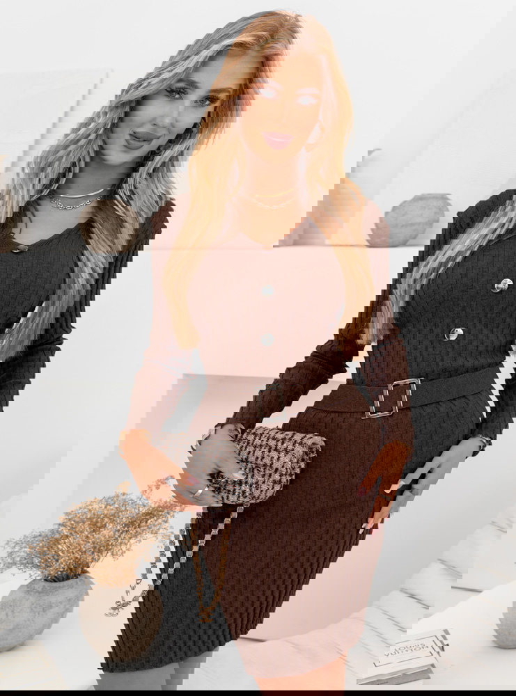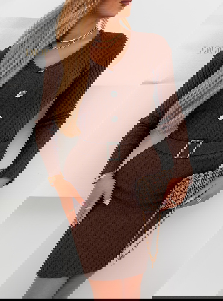Czekoladowa sweterkowa sukienka z ozdobnymi guzikami Phrona