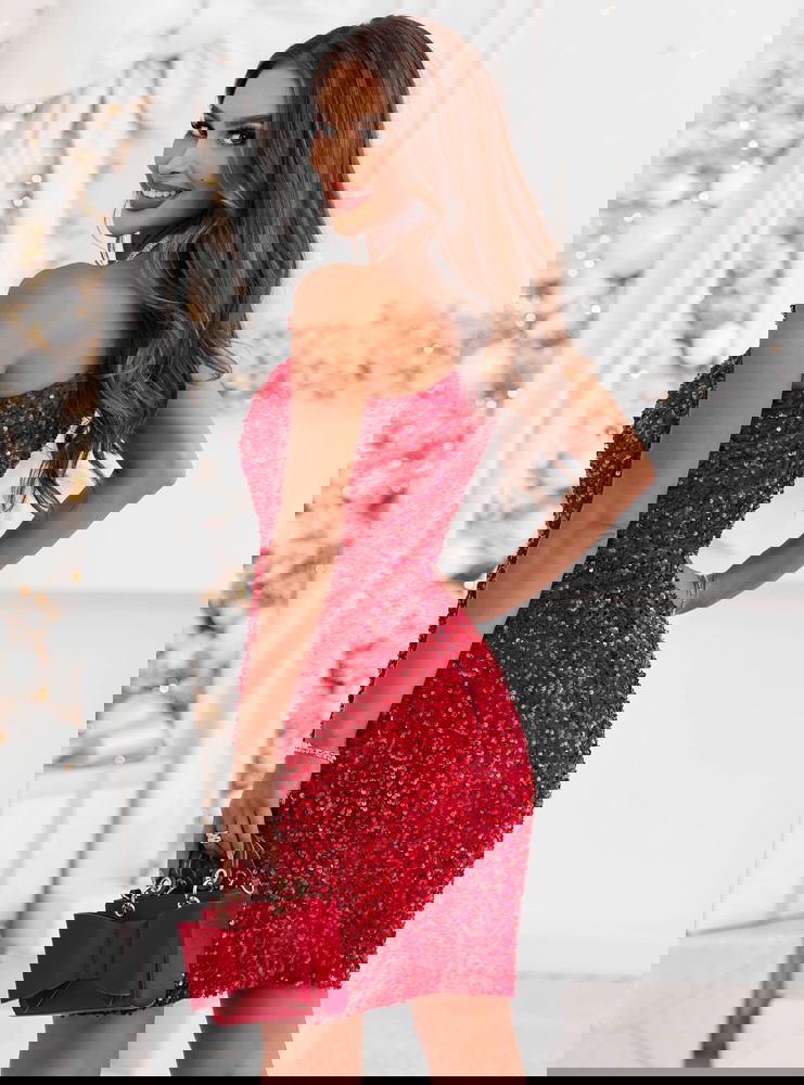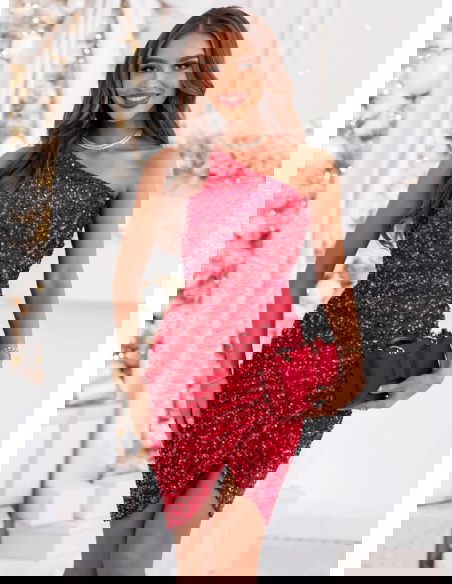 Malinowa cekinowa świąteczna sukienka mini Pearlette