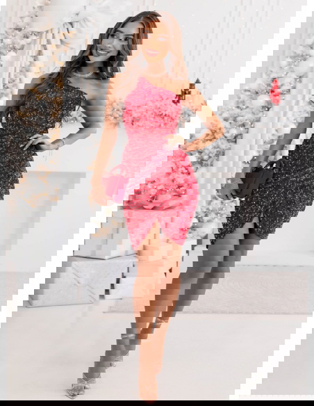 Malinowa cekinowa sukienka mini Pearlette to połączenie blasku, kobiecości i wyrafinowanego stylu. Malinowy odcień dodaje jej wyjątkowego charakteru, a cekinowe wykończenie sprawia, że całość przyciąga spojrzenia.