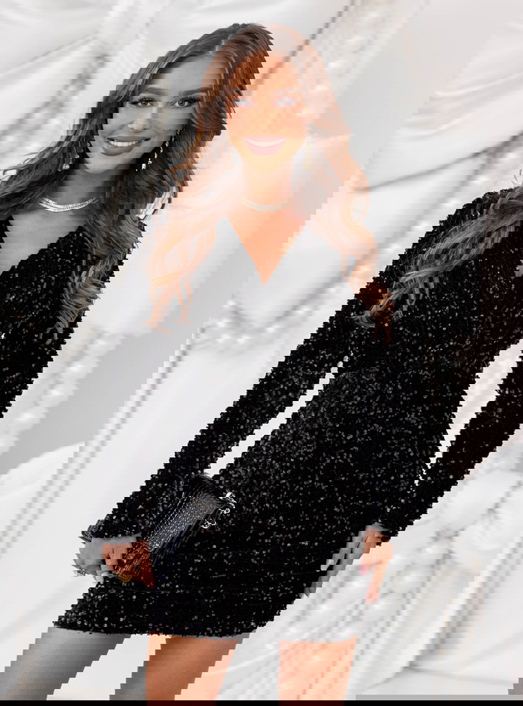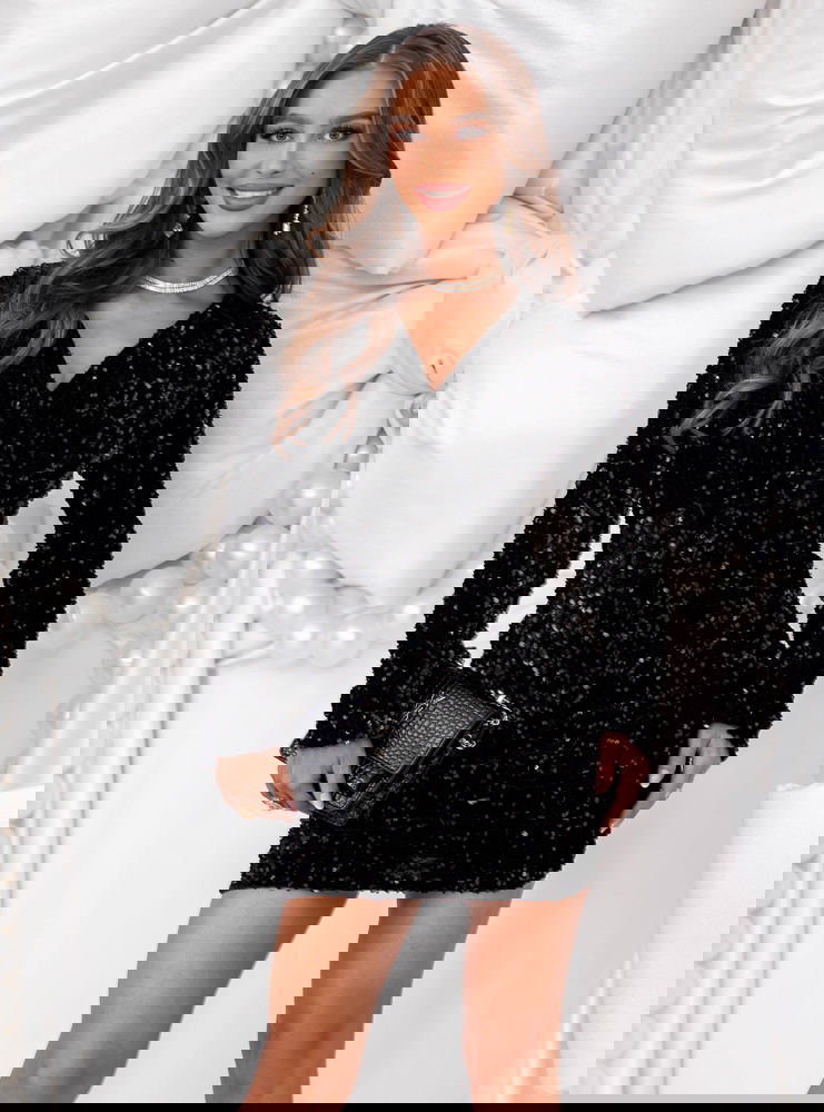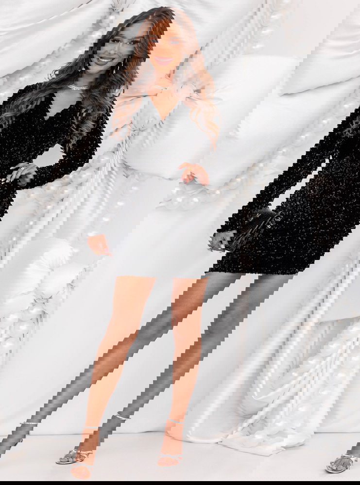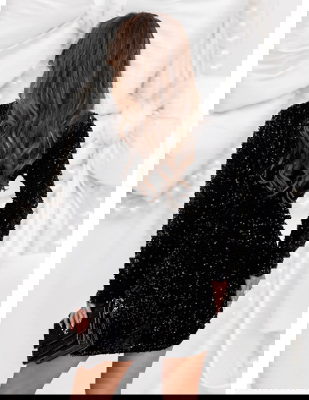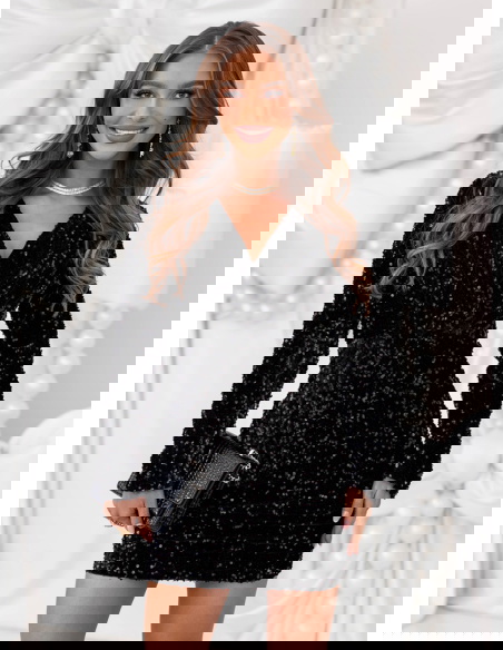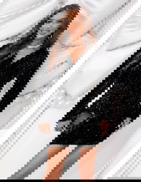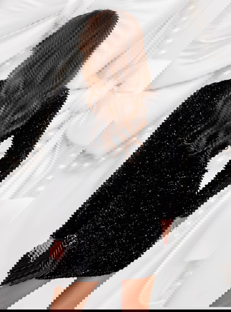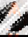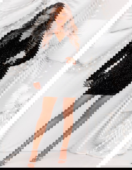 Czarna cekinowa sukienka świąteczna z przekładanym dekoltem Leewitt