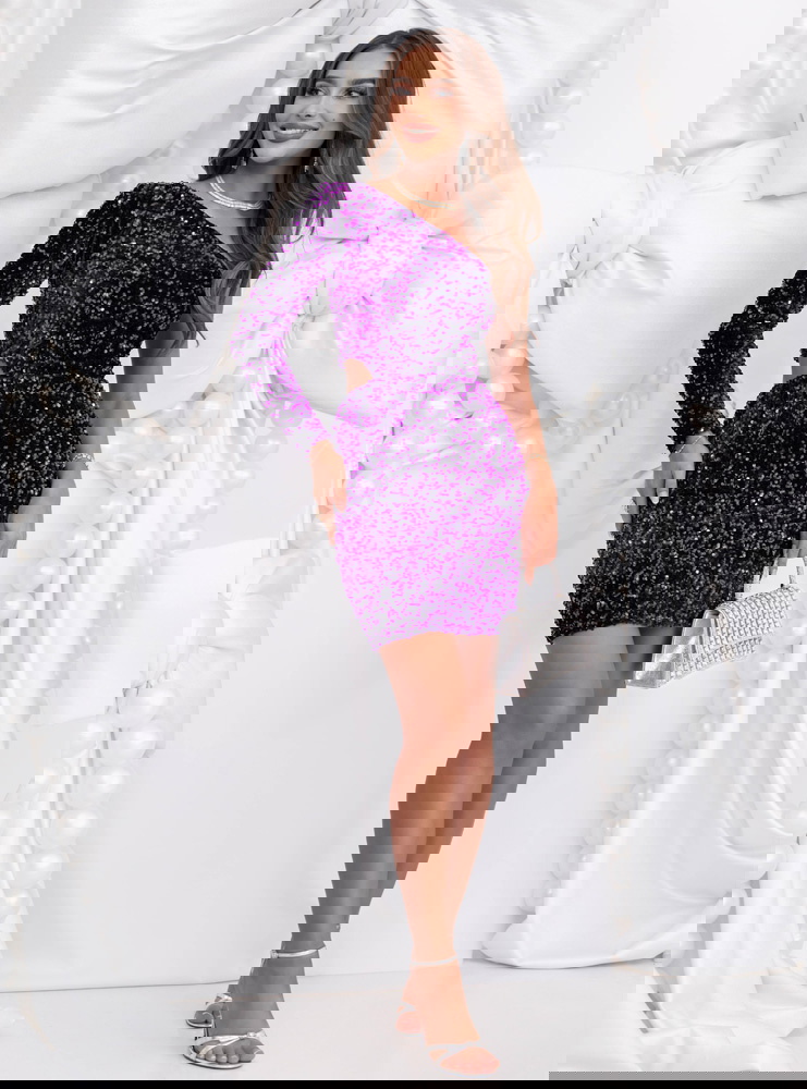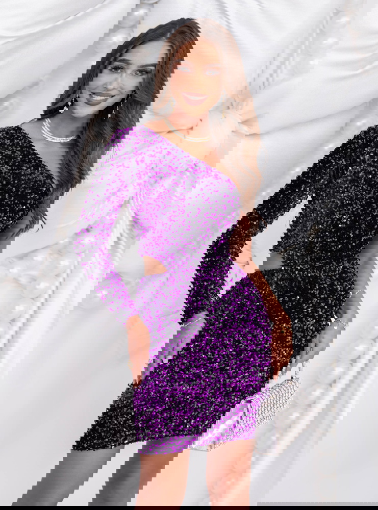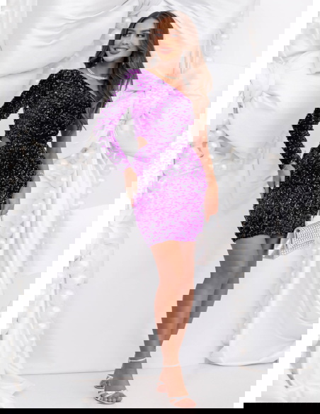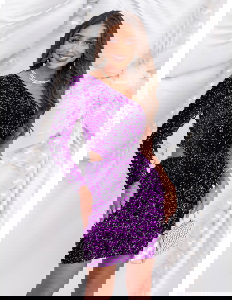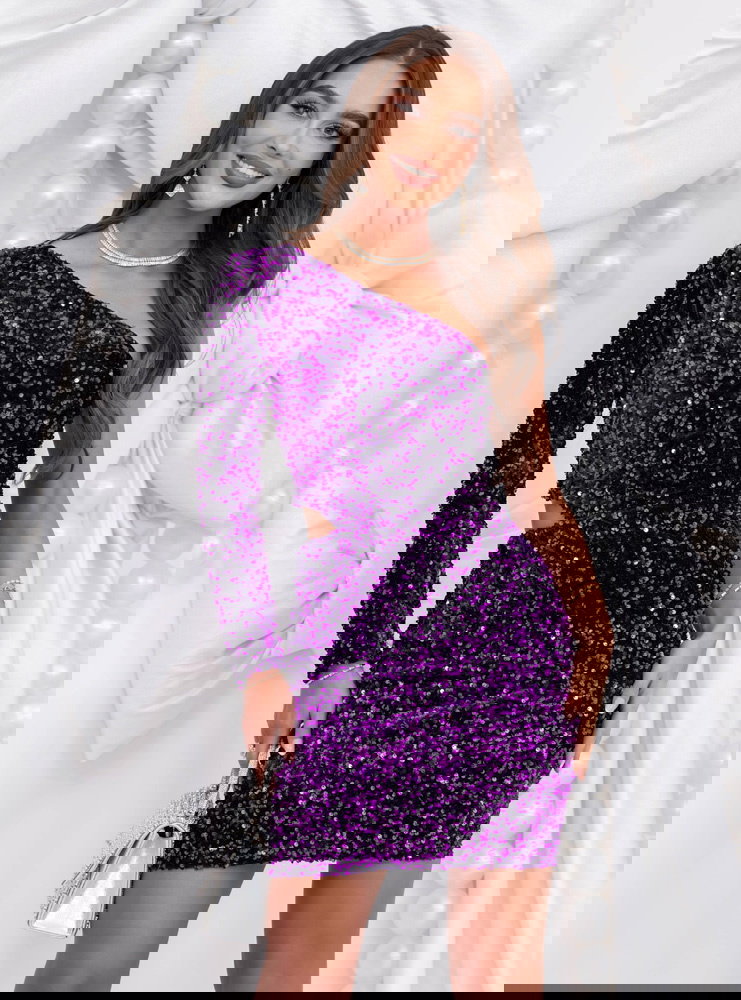 Fioletowa cekinowa sukienka mini Jakayla to propozycja pełna blasku, energii i zmysłowego charakteru. Jej intensywny kolor i połyskujące wykończenie tworzą niezwykle efektowną całość, która idealnie wpisuje się w klimat wieczorowych stylizacji. To model, który zachwyca nie tylko kolorem, ale i dopasowanym krojem podkreślającym figurę. Długość mini dodaje lekkości i kobiecego wdzięku, a asymetryczny dekolt wprowadza nowoczesny akcent. Długie rękawy równoważą błyszczący materiał, nadając kreacji eleganckiego balansu. Cekiny pięknie odbijają światło, tworząc subtelny efekt glamour przy każdym ruchu. Fiolet to barwa elegancji, pewności siebie i wyjątkowości – idealna na wyjątkowe okazje. Ta sukienka to połączenie szyku i energii, które sprawia, że każda kobieta może poczuć się olśniewająco.