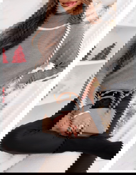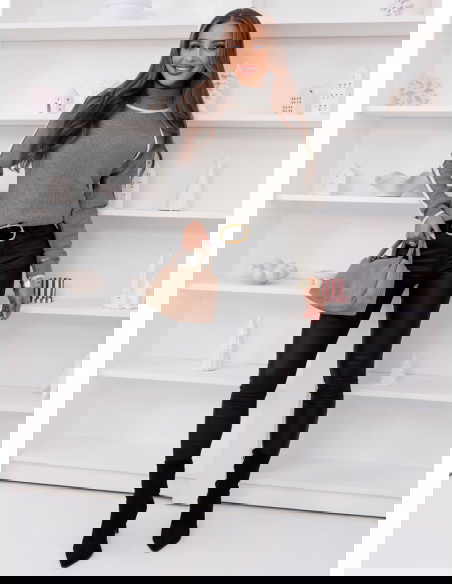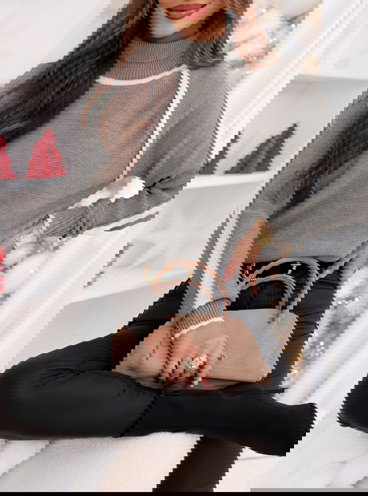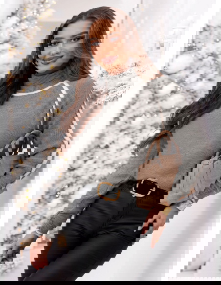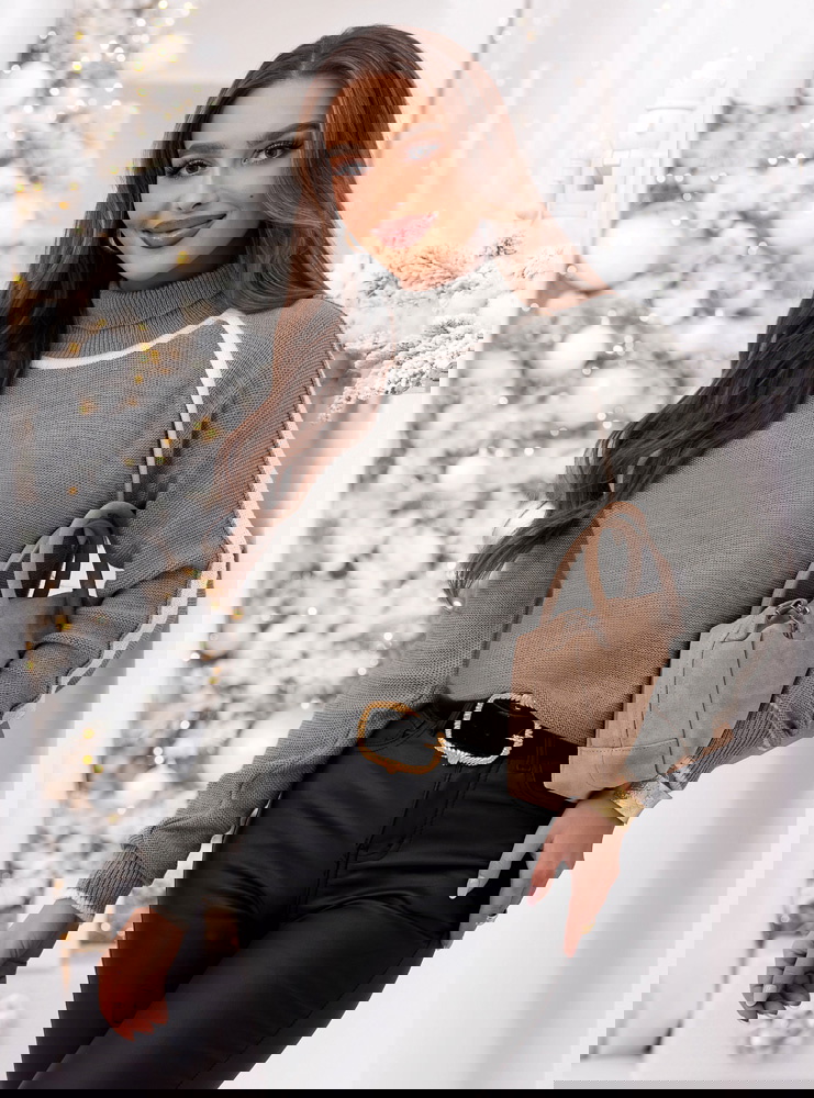 Szary sweter z golfem Melynda to idealna propozycja dla kobiet, które cenią elegancję w codziennym wydaniu. To klasyk, który łączy ponadczasowy styl z nowoczesnym akcentem w postaci subtelnych kontrastowych lamówek. Jego chłodny, stonowany odcień szarości sprawia, że doskonale komponuje się z wieloma kolorami, tworząc niezliczone możliwości stylizacyjne. Golf otula szyję i dodaje całości przytulności, a zarazem eleganckiego charakteru. Luźniejszy krój zapewnia wygodę, jednocześnie podkreślając kobiecą sylwetkę w delikatny sposób. To sweter, który świetnie sprawdzi się zarówno w casualowych zestawach, jak i w bardziej dopracowanych outfitach. Subtelne detale czynią go wyjątkowym i sprawiają, że wyróżnia się wśród klasycznych modeli.
