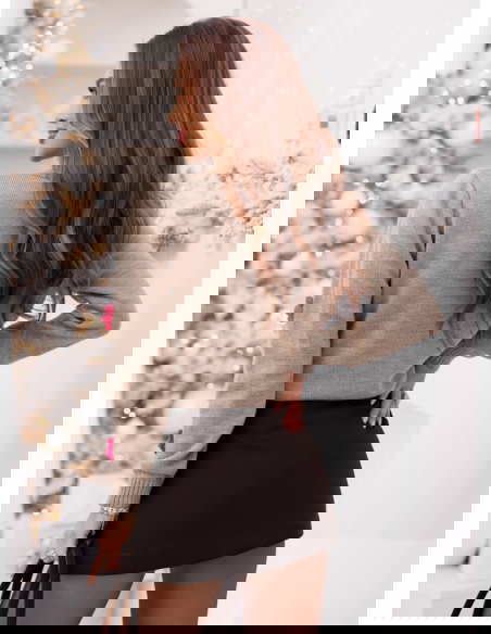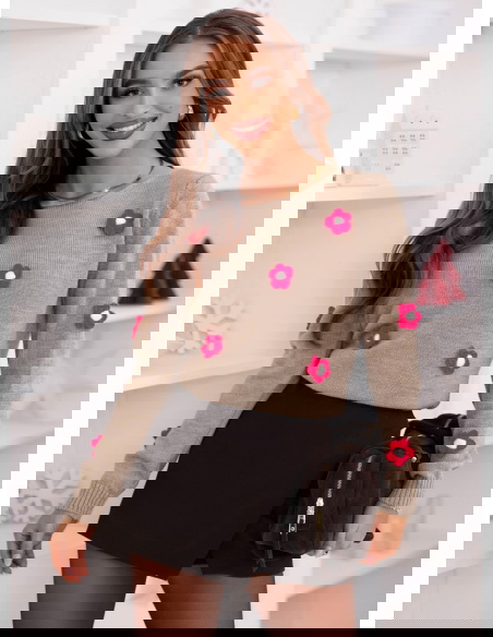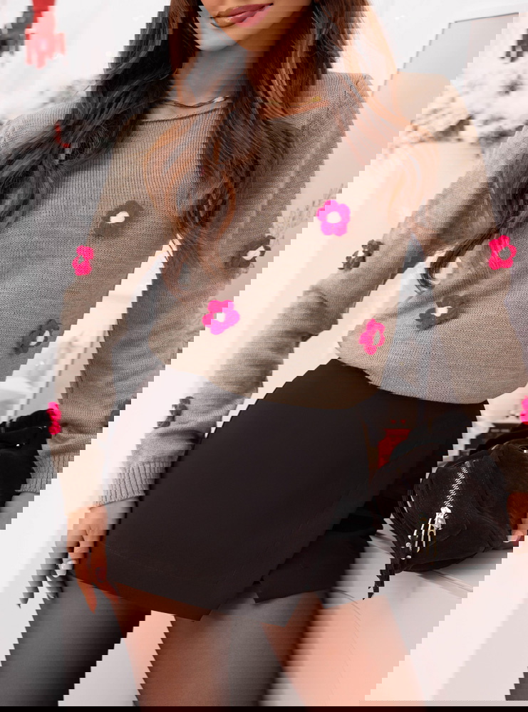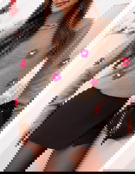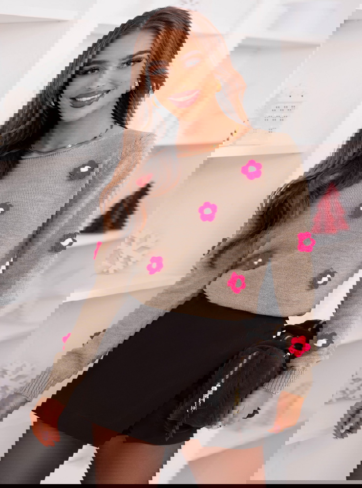 Sweter z ozdobnymi kwiatkami Eimiko - mocha mousse