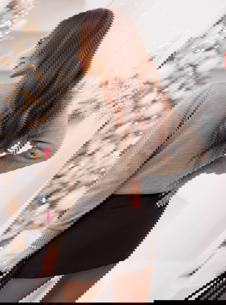 Sweter z ozdobnymi kwiatkami Eimiko - mocha mousse to propozycja, która łączy romantyczny urok z jesiennym ciepłem. Jego delikatny, karmelowy odcień wprowadza przytulny nastrój, a subtelne, trójwymiarowe kwiatki dodają całości wyjątkowego, dziewczęcego wdzięku. To model, który zachwyca detalami i wyróżnia się na tle klasycznych fasonów. Każdy drobny element został zaprojektowany tak, by podkreślić kobiecość w naturalny, niewymuszony sposób. Sweter prezentuje się niezwykle stylowo, a jednocześnie pozostaje wygodny i uniwersalny. Ozdobne kwiatki tworzą efekt subtelnej dekoracji. To idealna propozycja dla kobiet, które lubią połączenie prostoty i romantycznych akcentów. Sweter z ozdobnymi kwiatkami – mocha mousse to modny, ale ponadczasowy wybór na chłodniejsze dni.