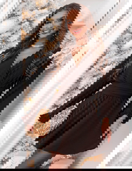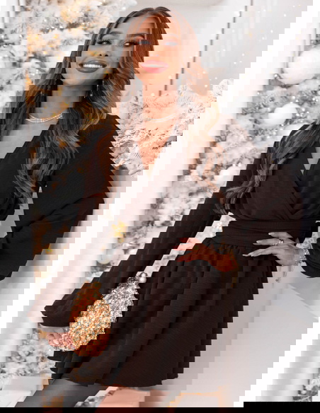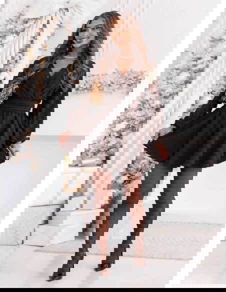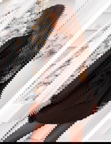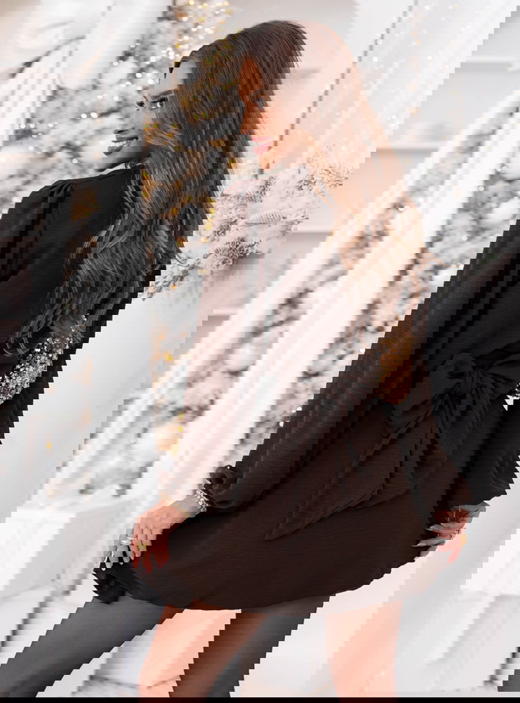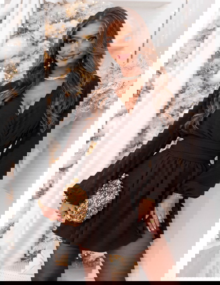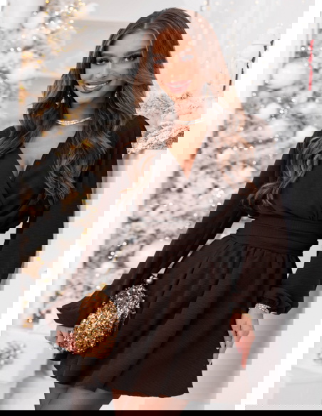 Czekoladowy kombinezon jak sukienka na święta z bufiastymi rękawami Luinda