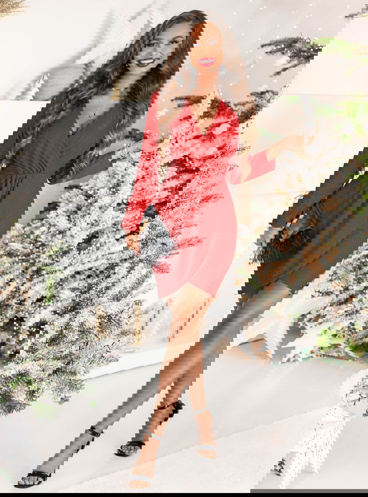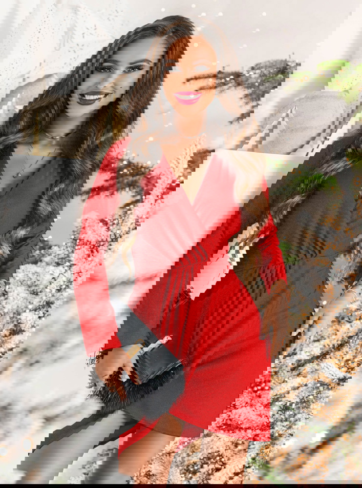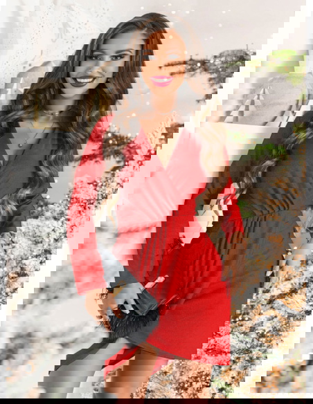Malinowa błyszcząca sukienka z przekładanym dekoltem Saniita to propozycja, która od pierwszej chwili przyciąga uwagę swoim wyrazistym kolorem i eleganckim charakterem. Jej malinowy odcień pięknie podkreśla urodę i doskonale wpisuje się w jesienno-zimowe stylizacje. Delikatny połysk dodaje całości wyjątkowego blasku, który świetnie sprawdza się podczas sezonu pełnego świątecznych i wieczorowych spotkań. To model, który łączy subtelną kobiecość z nowoczesną elegancją, tworząc idealną harmonię. Przekładany dekolt wprowadza lekko zmysłowy akcent, pozostając jednocześnie niezwykle gustowny. Rozkloszowany dół nadaje sukience lekkości i sprawia, że pięknie układa się w ruchu. To sukienka, która podkreśla atuty sylwetki, nie przytłaczając jej. Jej charakter sprawia, że pasuje zarówno do klasycznych, jak i bardziej błyszczących dodatków. To propozycja dla kobiet, które chcą poczuć się wyjątkowo w każdej sytuacji. Model ten zachwyca elegancją i świeżością, idealnie wpisując się w zimowy klimat.