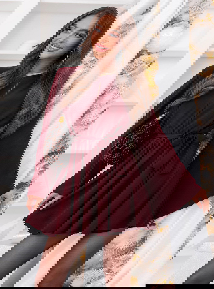 Bordowy kombinezon jak sukienka wiązany w talii Starlene świetnie sprawdzi się na świąteczne spotkania i zimowe przyjęcia. To doskonały wybór na rodzinne uroczystości, eleganckie kolacje czy wyjścia do restauracji.