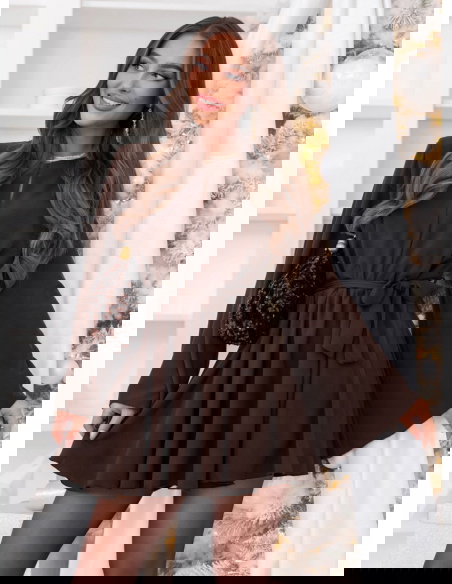 Czekoladowy kombinezon jak sukienka wiązany w talii Starlene to propozycja, która już od pierwszego spojrzenia zachwyca swoją harmonijną, elegancką linią. To model tworzony z myślą o kobietach ceniących subtelne, ale efektowne fasony. To także idealny wybór na jesienno-zimowy sezon, gdy szukasz czegoś lekkiego w formie, a jednocześnie odpowiednio szykownego. To kombinezon, który wygląda jak sukienka, dzięki czemu prezentuje się niezwykle kobieco i delikatnie. To fason, który pięknie podkreśla talię i tworzy naturalnie zbalansowaną sylwetkę. To model, który świetnie wpisuje się w aktualne trendy, jednocześnie pozostając ponadczasowy. To wyjątkowa propozycja dla kobiet lubiących minimalistyczny, ale dopracowany styl. To kombinezon, który sprawia, że każdy ruch wygląda miękko i lekko. To również doskonały sposób na stworzenie eleganckiej stylizacji bez wysiłku. To wybór, który doda Twojej garderobie ciepłego, jesienno-zimowego uroku.