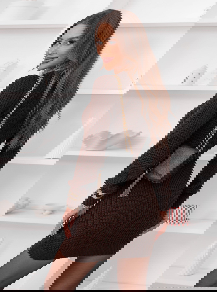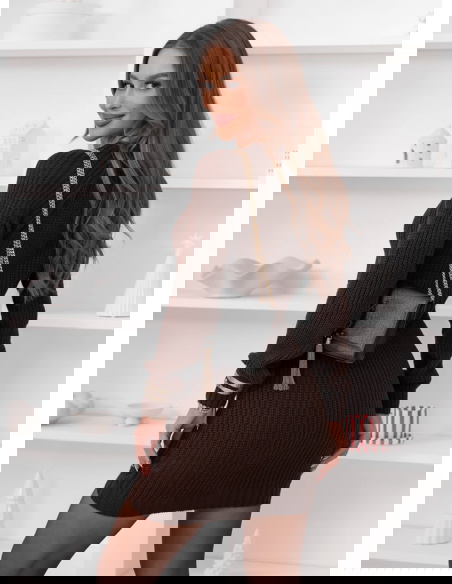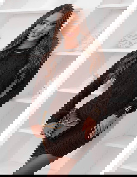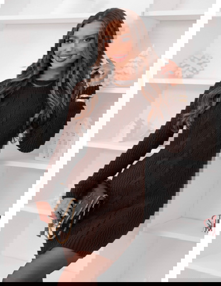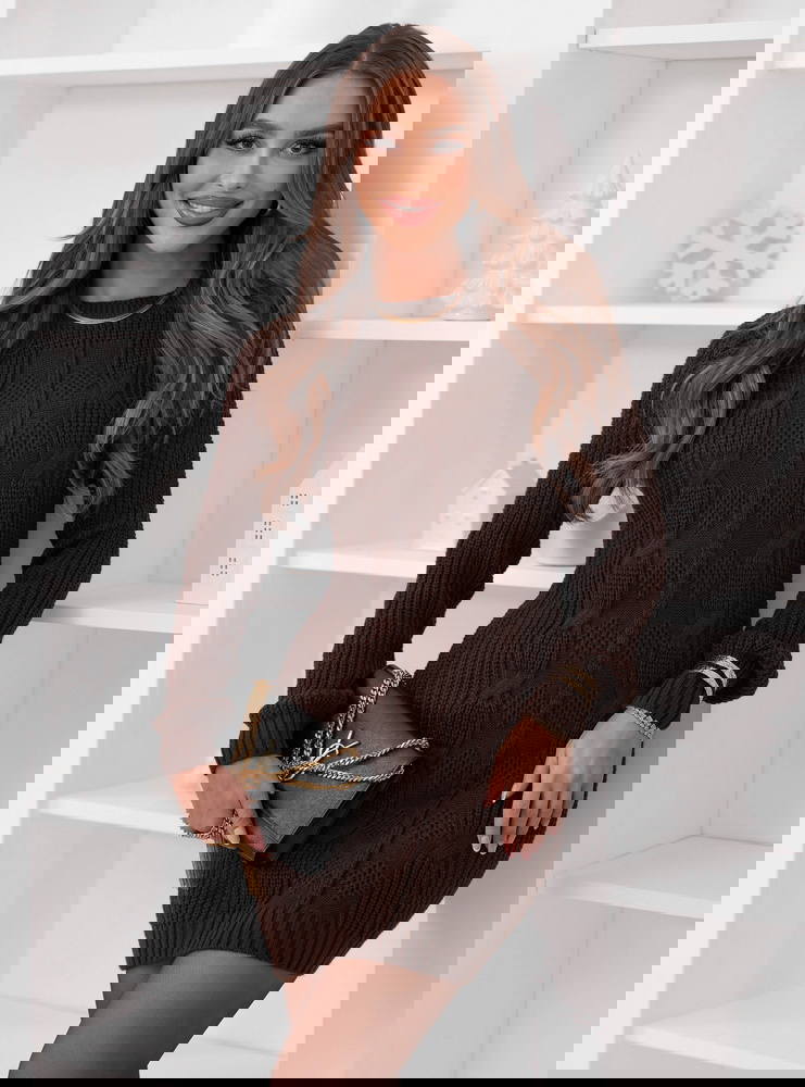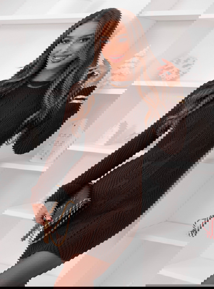 Czekoladowa sweterowa sukienka z ozdobnym splotem Nijolee