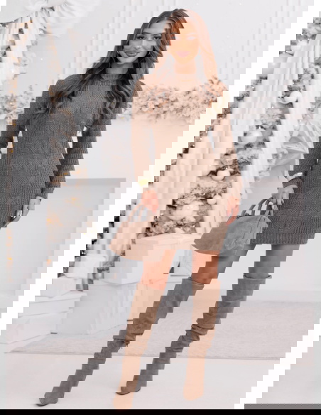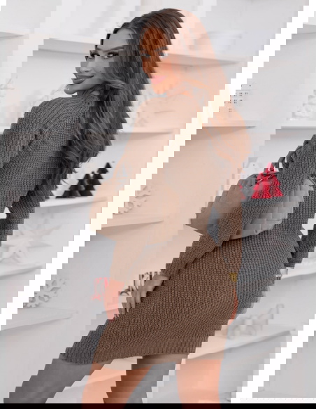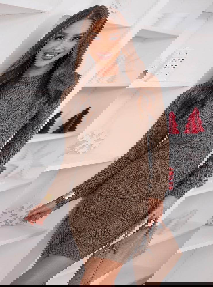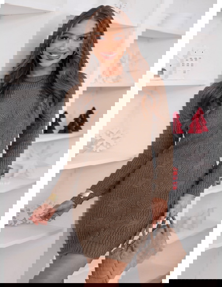 Sweterowa sukienka z ozdobnym splotem Nijolee - mocha mousse