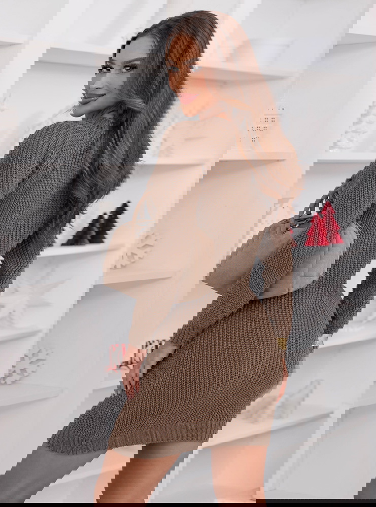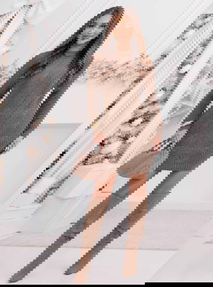 Sweterowa sukienka z ozdobnym splotem Nijolee - mocha mousse to esencja jesiennej elegancji w przytulnym wydaniu. Jej subtelny, stonowany odcień idealnie oddaje klimat chłodniejszych dni, wprowadzając do stylizacji spokój i harmonię. To model, który zachwyca prostotą, a jednocześnie przyciąga uwagę dopracowanymi detalami. Ozdobny splot nadaje jej wyjątkowego charakteru i sprawia, że prezentuje się niezwykle kobieco.