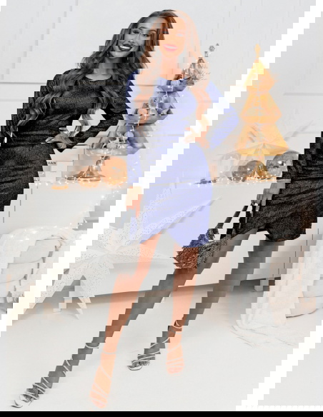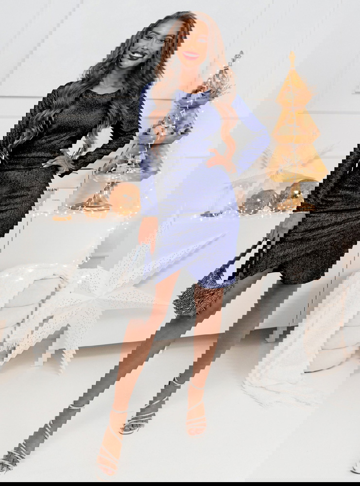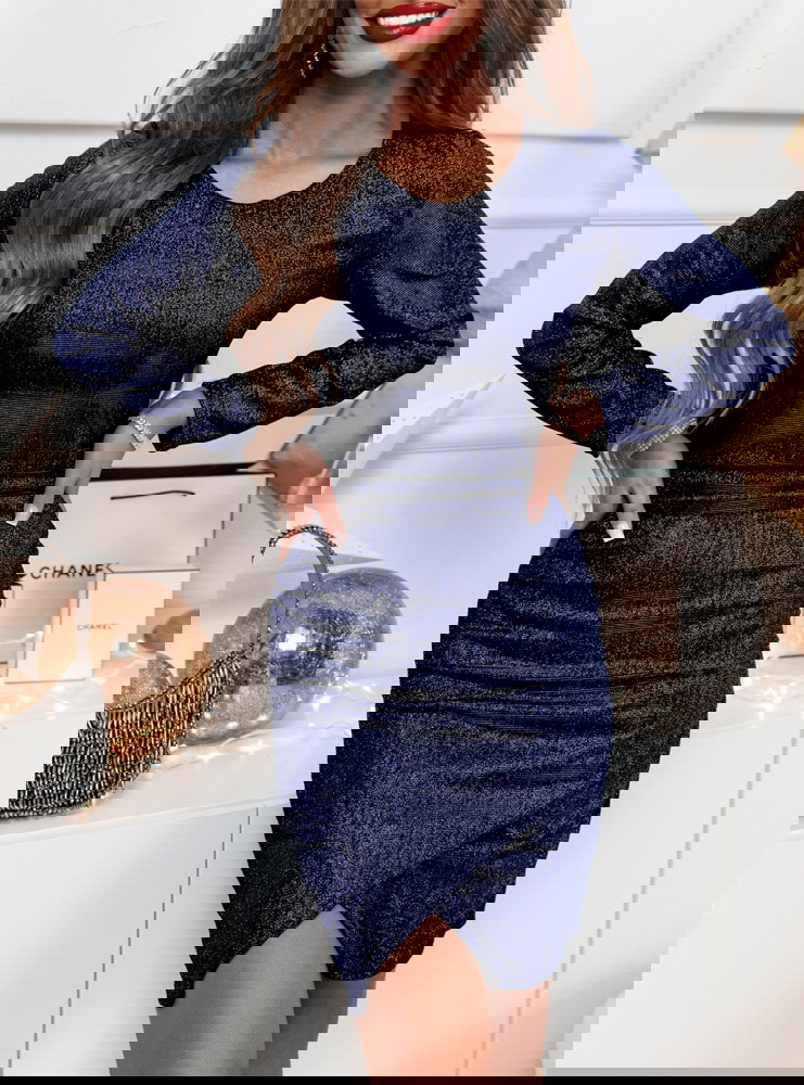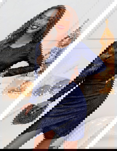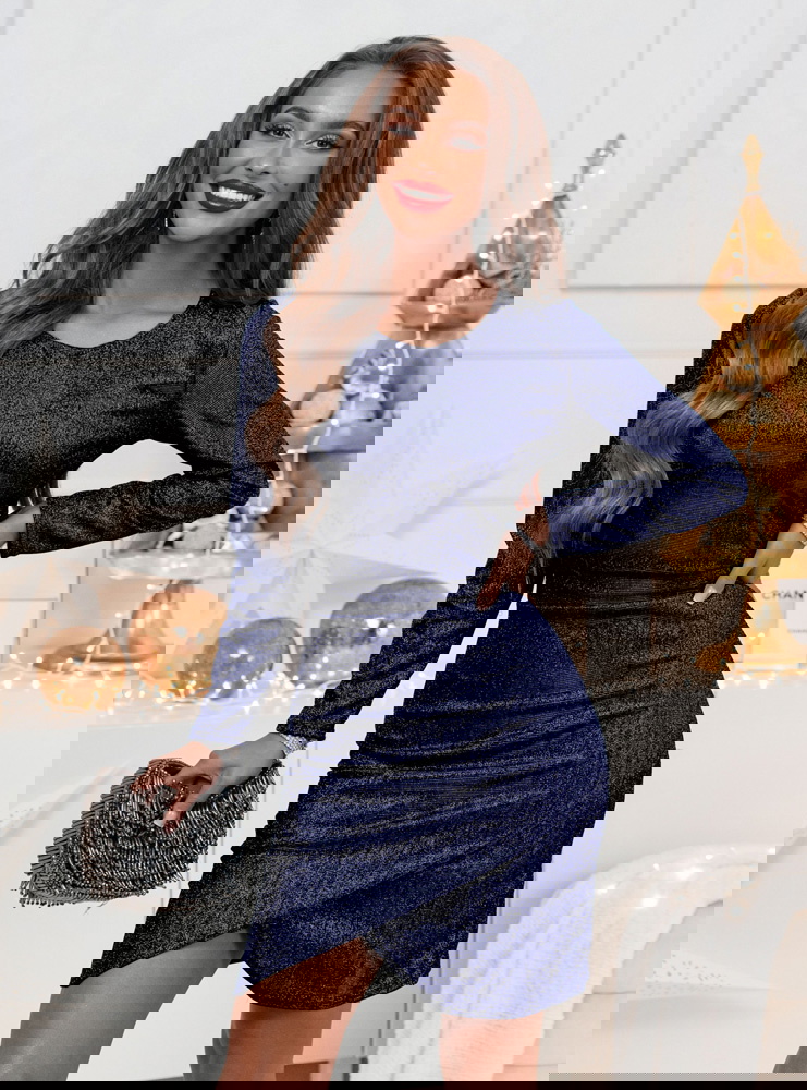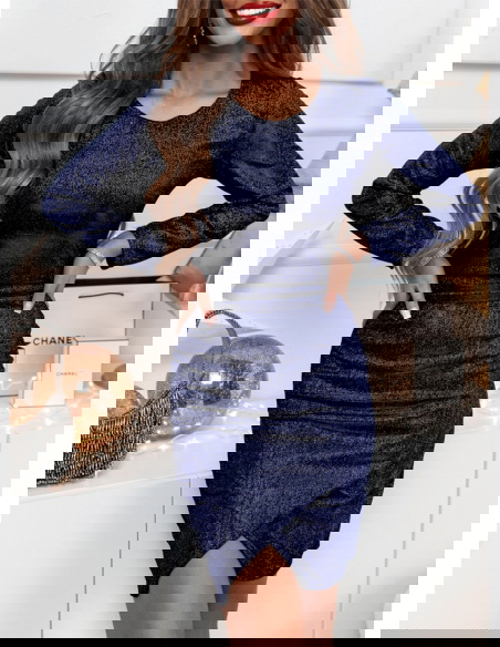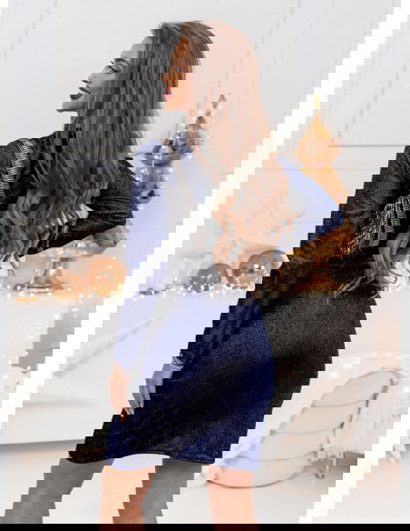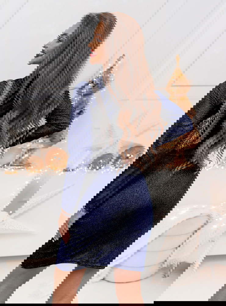 Granatowa błyszcząca przekładana sukienka Sonce doskonale sprawdzi się na wieczorne wyjścia i eleganckie kolacje. To idealny wybór na świąteczne uroczystości, zimowe przyjęcia oraz sylwestrowe zabawy.