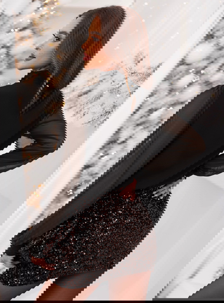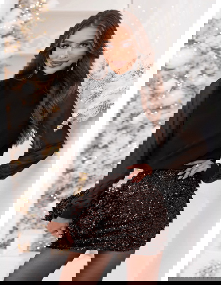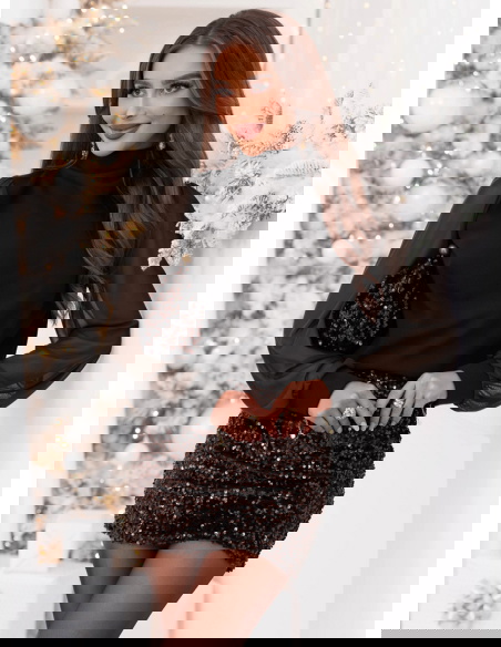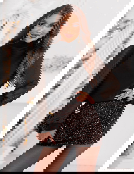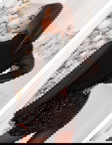 Czarna bluzka z tiulowymi rękawami na święta Nakoma