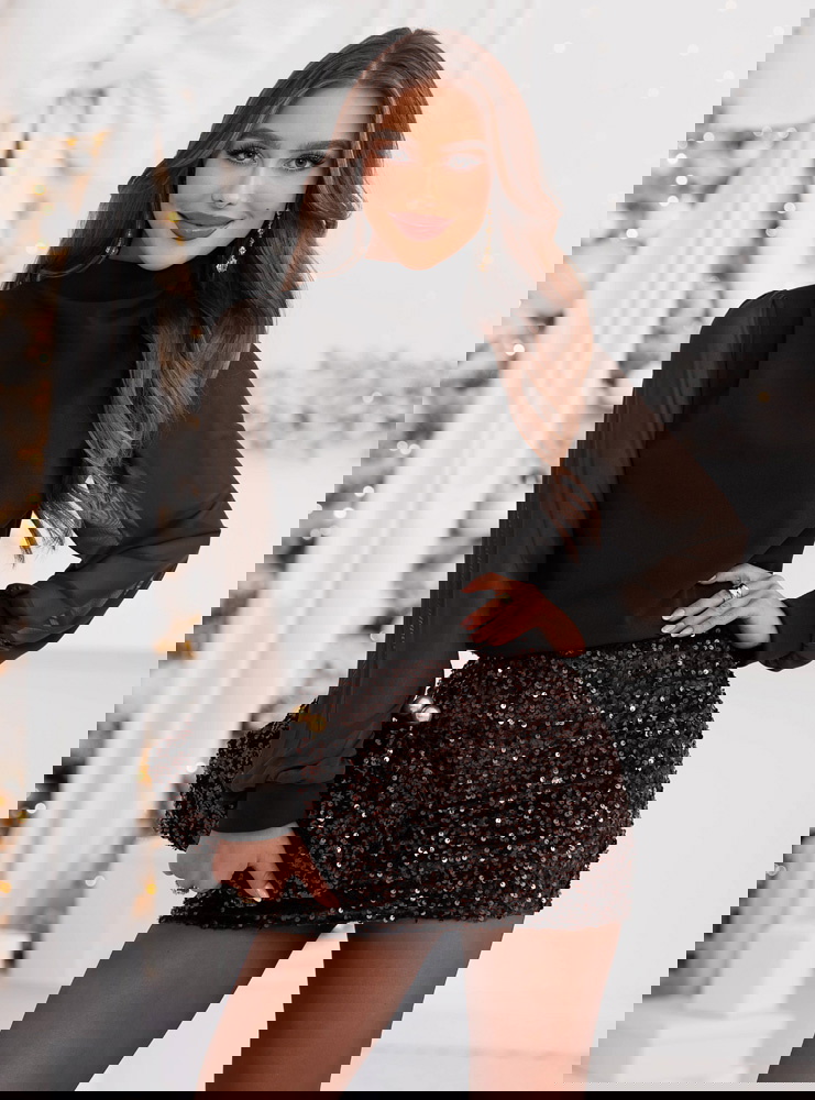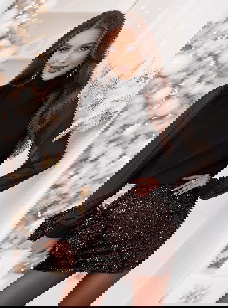 Czarna bluzka z tiulowymi rękawami Nakoma to propozycja, która od razu przyciąga uwagę eleganckim, nowoczesnym charakterem. To model, który w subtelny sposób łączy klasykę z delikatną nutą wieczorowego szyku. To także doskonały wybór na jesienno-zimowy sezon, kiedy chcesz postawić na coś efektownego, ale wciąż bardzo uniwersalnego. To bluzka, która pięknie podkreśla sylwetkę, jednocześnie zachowując lekkość i swobodę. To fason, który dodaje stylizacji wyjątkowego, kobiecego wyrazu. To propozycja idealna dla kobiet lubiących detale, które robią wrażenie. To model, który świetnie sprawdzi się zarówno w codziennych, jak i bardziej eleganckich zestawach. To bluzka, która z łatwością dopasuje się do różnych stylów – od klasycznych po te bardziej nowoczesne. To wybór, który wprowadzi do garderoby subtelnie wieczorowy klimat. To idealna opcja, gdy chcesz wyglądać stylowo, nie rezygnując z komfortu.