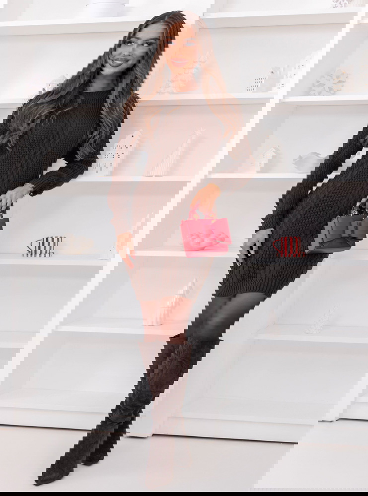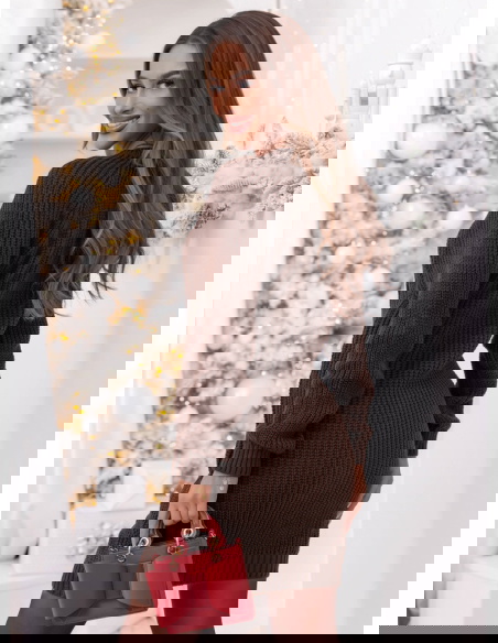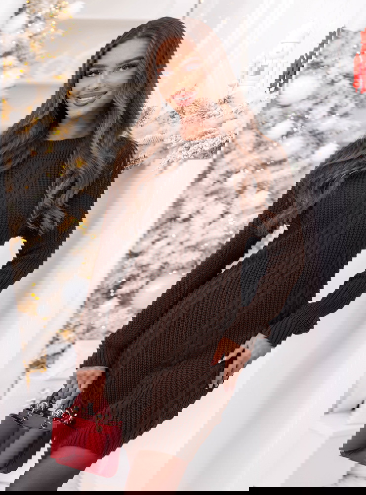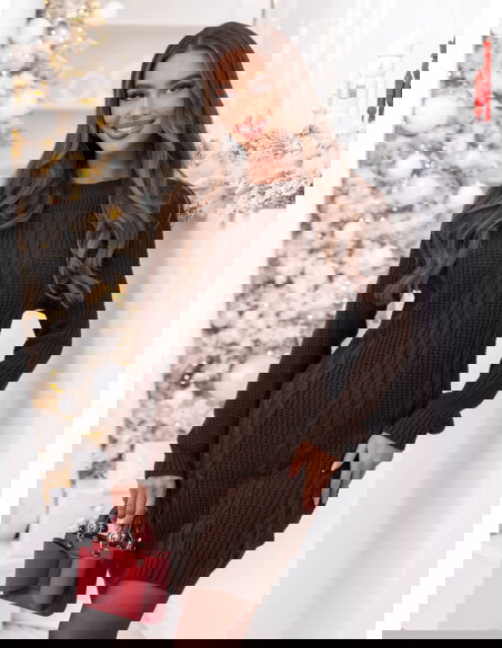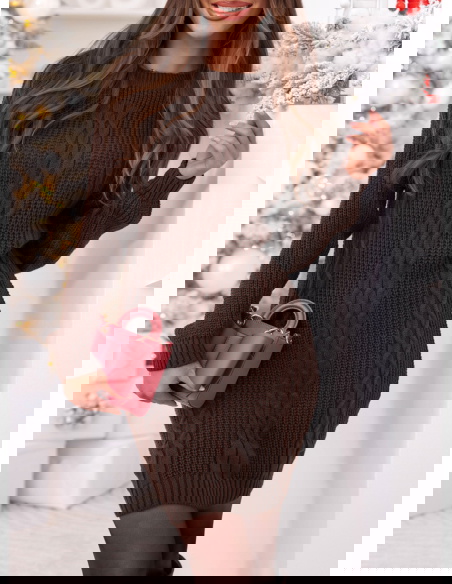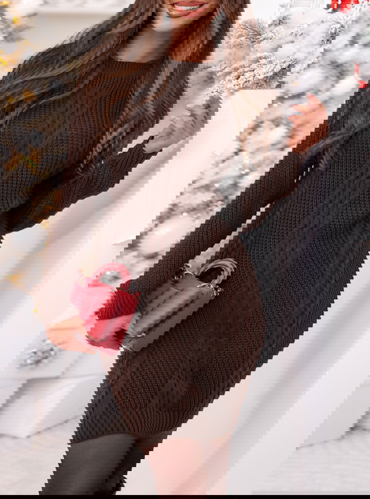 Czekoladowa swetrowa sukienka z ozdobnym splotem Jessamyn