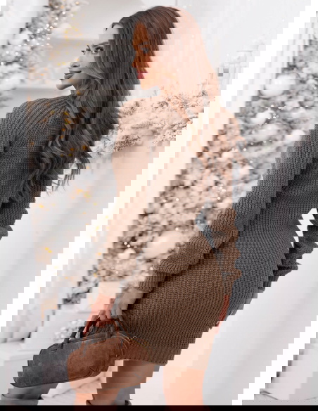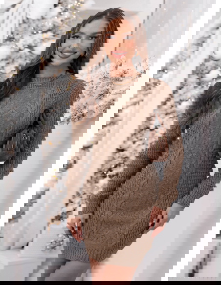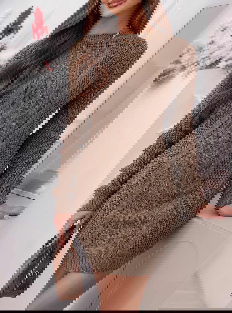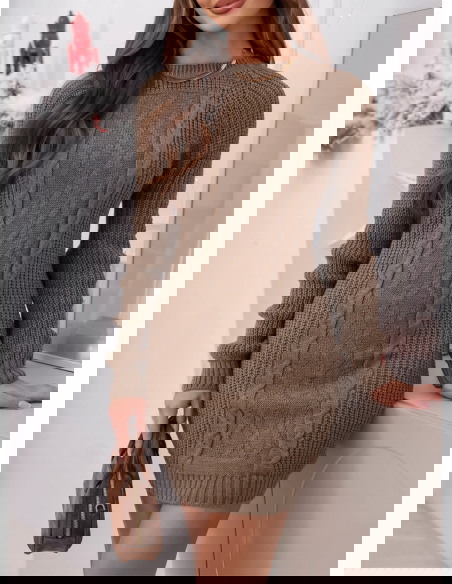 Swetrowa sukienka z warkoczykowym splotem Janalee - mocha mousse