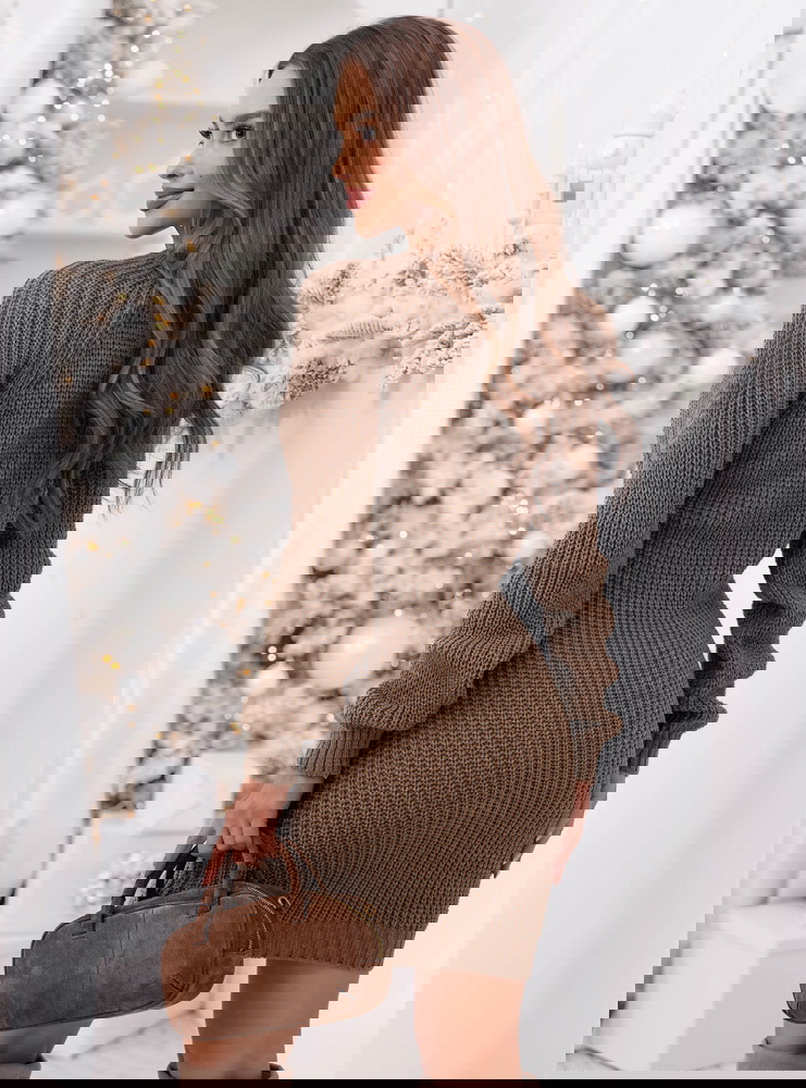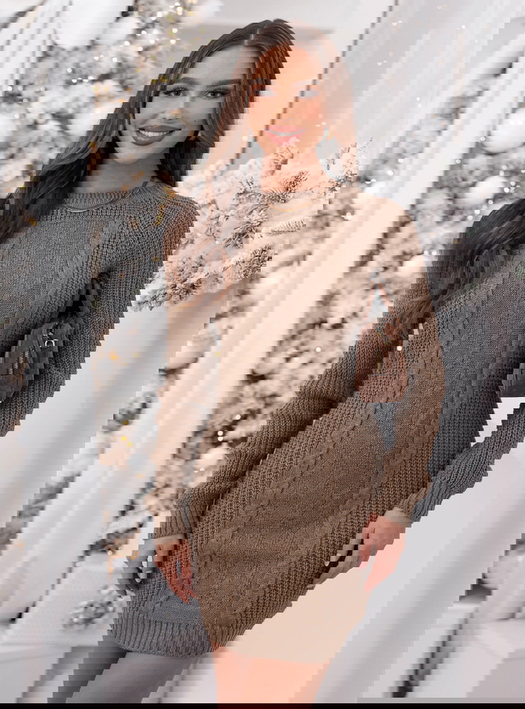 Swetrowa sukienka z warkoczykowym splotem Janalee - mocha mousse to idealny wybór na chłodniejsze dni, kiedy szukasz połączenia wygody i stylu. Jej subtelny jesienny charakter sprawia, że od razu dodaje ciepła każdej stylizacji. Delikatny warkoczykowy splot nadaje jej uroku, który przyciąga uwagę, ale nie przytłacza. To model, który podkreśla sylwetkę w naturalny sposób i świetnie wpisuje się w codzienne, kobiece zestawy. Możesz założyć ją zarówno na spacer, jak i na spokojny dzień w pracy, nie rezygnując z elegancji. Całość prezentuje się niezwykle przytulnie i harmonijnie, tworząc klimat idealny na jesienne tygodnie.
