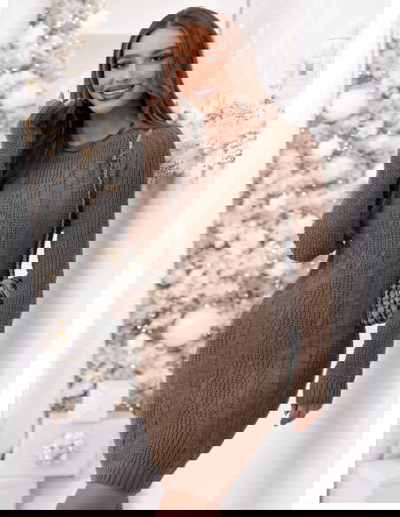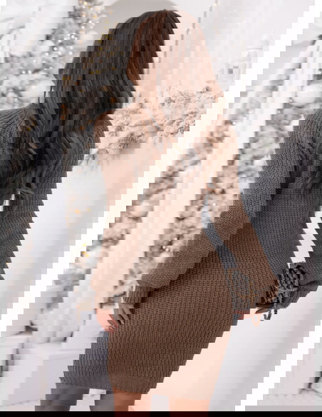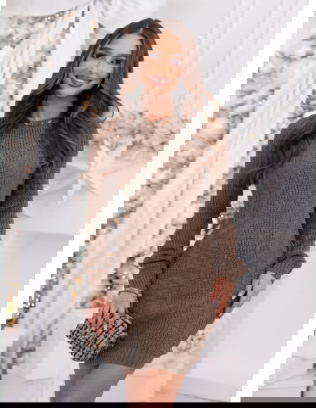 Swetrowa sukienka mini Beverlee - mocha mousse