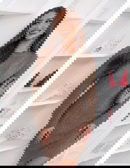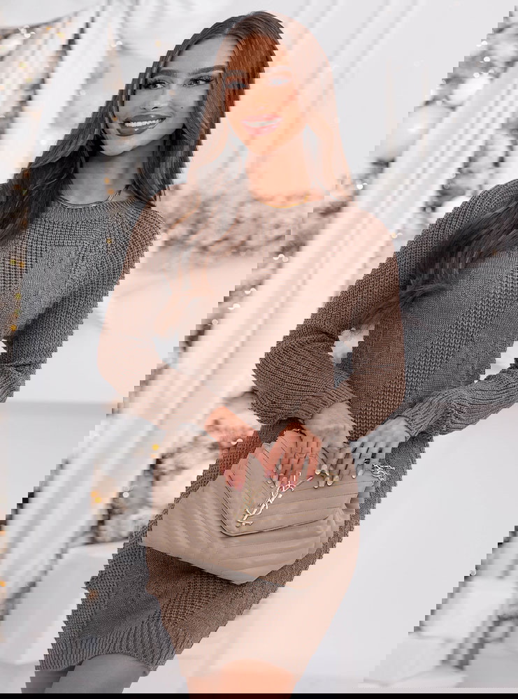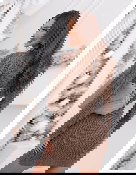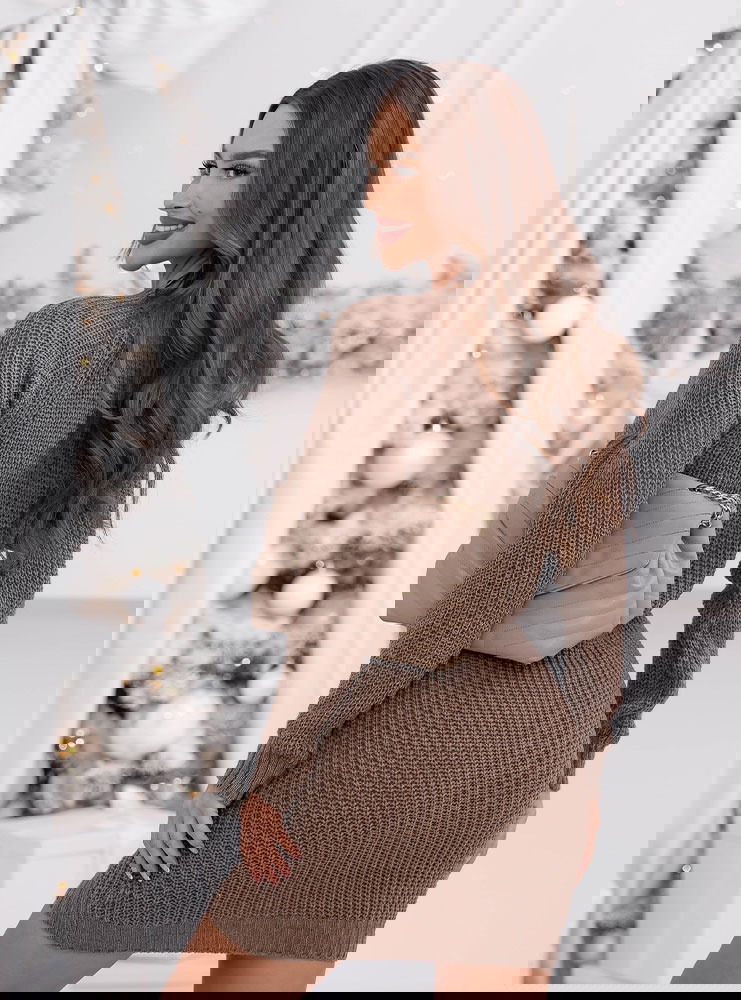 Swetrowa sukienka mini Ansonia - mocha mousse