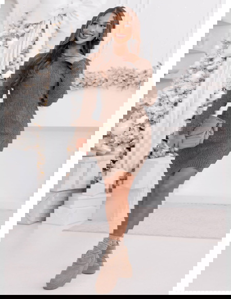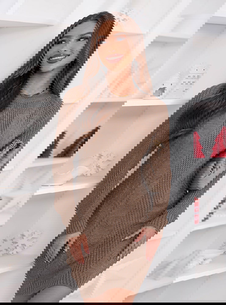 Swetrowa sukienka mini Ansonia - mocha mousse to propozycja, która doskonale wpisuje się w jesienny, przytulny klimat. To model, który od razu przyciąga uwagę swoim ciepłym odcieniem i subtelną, kobiecą sylwetką. Jej delikatna linia pięknie dopasowuje się do figury, dodając stylizacji lekkości i naturalnej swobody. Ozdobny splot nadaje jej wyjątkowego charakteru, dzięki czemu nawet proste zestawy zyskują wyrazisty akcent. To idealny wybór na dni, kiedy chcesz połączyć komfort z modnym wyglądem. Wystarczy zestawić ją z kozakami lub botkami, aby stworzyć jesienny look, który zawsze będzie prezentować się efektownie.