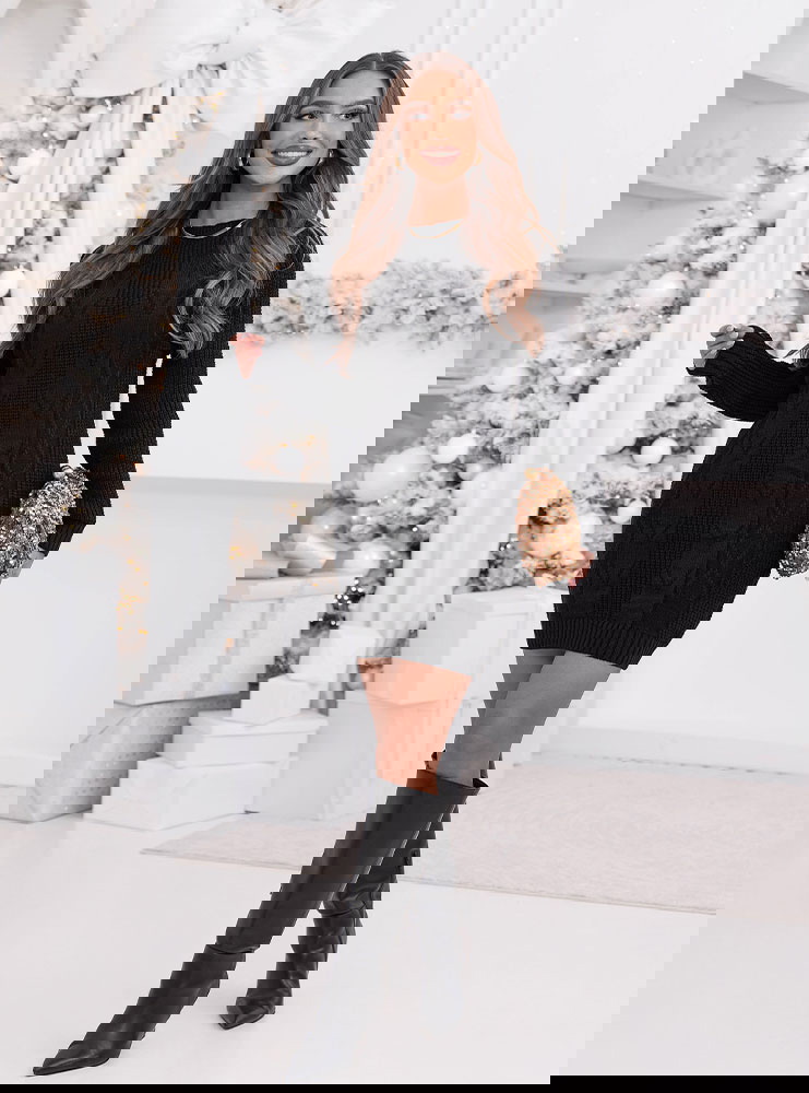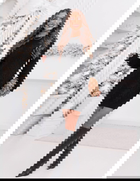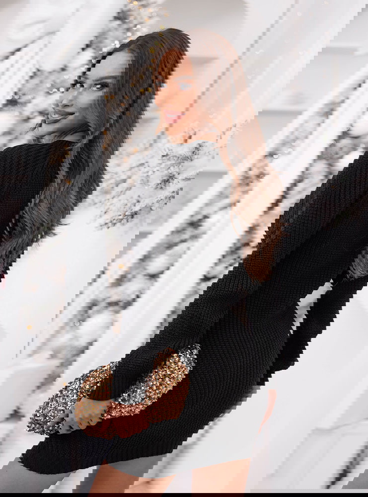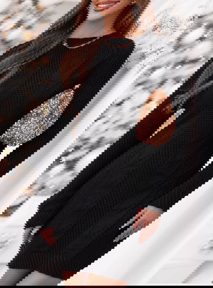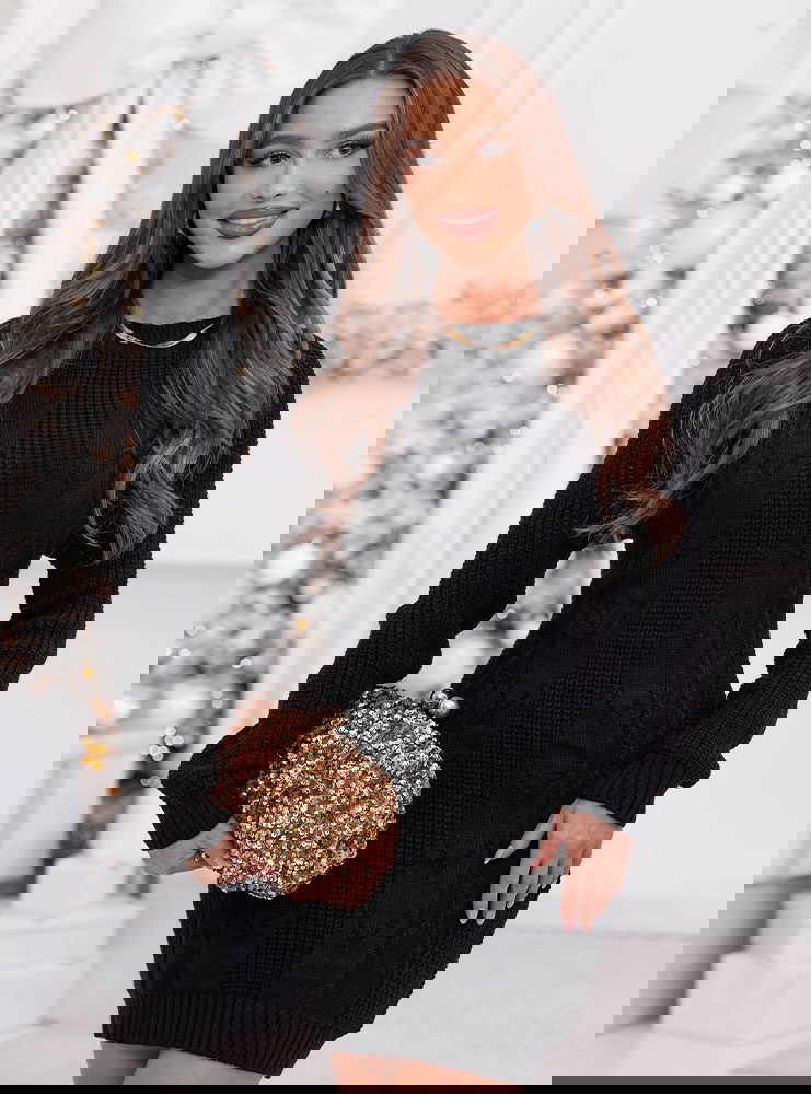 Czarna swetrowa sukienka mini Ansonia to propozycja, która idealnie łączy jesienną przytulność z elegancką prostotą. Jej klasyczny, głęboki kolor dodaje stylizacji ponadczasowego charakteru i sprawia, że łatwo dopasować ją do różnych okazji. Krótka długość nadaje całości lekkości, jednocześnie zachowując komfortowy i swobodny wygląd. Sukienka pięknie podkreśla sylwetkę, pozostając przy tym nienachalna i bardzo kobieca. To model, który sprawdzi się zarówno w codziennych zestawach, jak i w bardziej dopracowanych, jesiennych połączeniach. Jest idealna na te dni, kiedy chcesz poczuć się modnie, wygodnie i subtelnie elegancko.