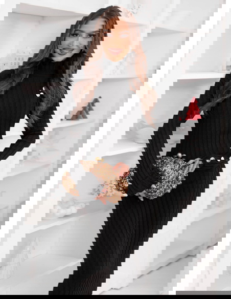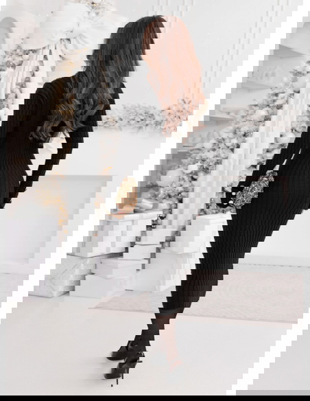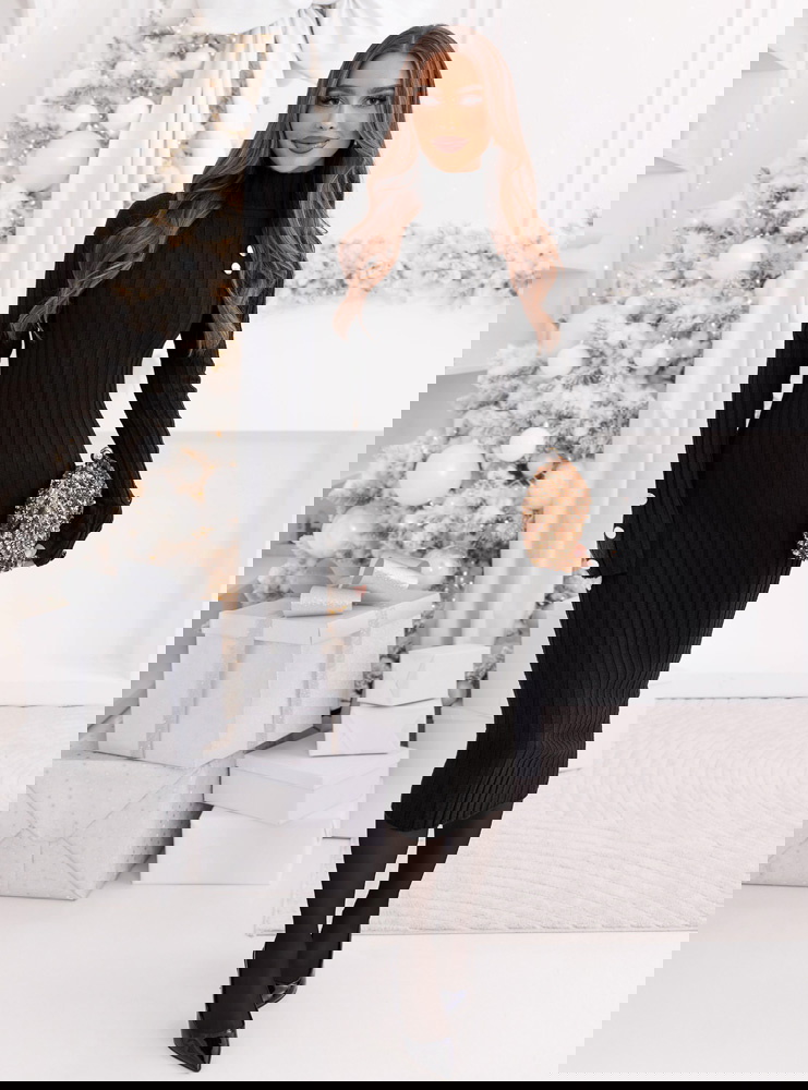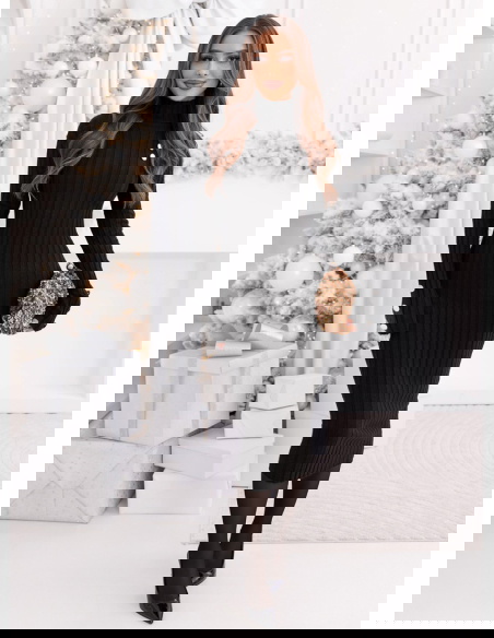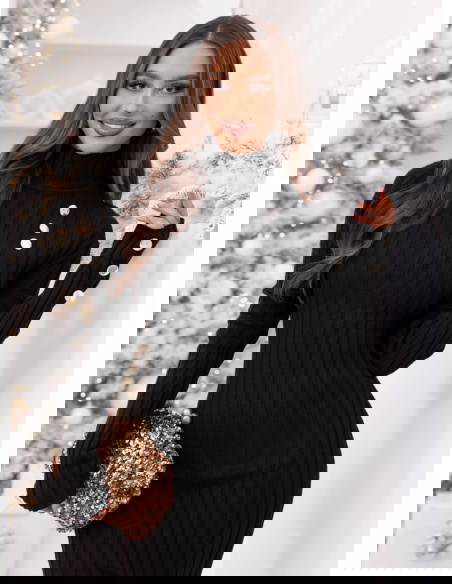 Czarna dopasowana sukienka z golfem Clemency to propozycja, która wprowadza do zimowo-jesiennych stylizacji elegancję połączoną z przytulnym charakterem. Jej klasyczny kolor sprawia, że całość prezentuje się wyjątkowo szykownie, a jednocześnie pozostaje uniwersalna. Dopasowany krój pięknie podkreśla sylwetkę, dodając jej smukłości i subtelnej kobiecości. Golf nadaje sukience ciepłego, otulającego wyrazu i świetnie wpisuje się w chłodniejszą aurę. Delikatne guziki przy ramieniu i na rękawach stanowią stylowy akcent, który dodaje całości lekko świątecznego, eleganckiego klimatu. To model, który idealnie sprawdzi się wtedy, gdy chcesz wyglądać wyjątkowo, ale jednocześnie czuć się komfortowo.