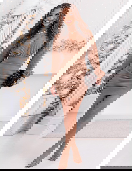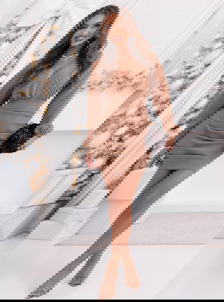 Sukienka mini z przekładanym dekoltem Jasqua - mocha mousse to propozycja, która od pierwszego momentu zachwyca elegancją i ciepłym, zimowym charakterem. Jej subtelny odcień idealnie wpisuje się w jesienno-zimowe stylizacje, tworząc spójną i harmonijną całość. Przekładany dekolt dodaje zmysłowości, zachowując jednocześnie pełną klasę i delikatność. Dopasowana góra pięknie podkreśla linię ramion i szyi, nadając całości kobiecego wyrazu. Marszczenia w dolnej części modelują sylwetkę i podkreślają talię, tworząc efekt smukłej i eleganckiej linii. Długie rękawy równoważą proporcje, dodając całości szyku i wyważenia. To sukienka, która doskonale łączy nowoczesność z ponadczasowym stylem. Jej minimalistyczna forma sprawia, że świetnie prezentuje się zarówno w świetle dziennym, jak i podczas wieczornych spotkań. To propozycja idealna dla kobiet, które szukają połączenia wygody i wyrazistej elegancji. Każdy detal został skomponowany tak, by podkreślić kobiecy urok w subtelnym, nieprzytłaczającym wydaniu.