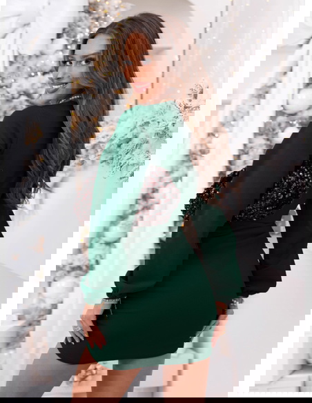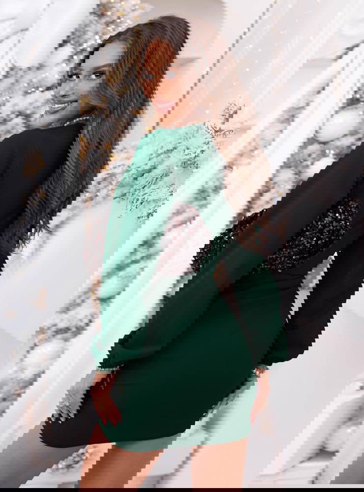 Sukienka mini z przekładanym dekoltem Jasqua - butelkowa zieleń to połączenie elegancji, klasy i subtelnego wdzięku. To model, który zachwyca swoim kobiecym krojem i pięknym, głębokim odcieniem zieleni – idealnym na sezon jesienno-zimowy. Przekładany dekolt dodaje całości zmysłowości, jednocześnie zachowując szykowny charakter. Dopasowany fason podkreśla sylwetkę i eksponuje jej atuty w wyjątkowo elegancki sposób. Długie rękawy wprowadzają lekkość i równowagę, tworząc harmonijną całość. Marszczenia w talii i po bokach dodają uroku, a jednocześnie pięknie modelują figurę. To kreacja, która przyciąga uwagę detalem i wyważonym designem. Butelkowa zieleń doskonale komponuje się z biżuterią w złotym lub perłowym odcieniu, podkreślając świąteczny klimat stylizacji. To sukienka, w której każda kobieta poczuje się wyjątkowo, elegancko i pewnie. Idealna dla tych, które lubią klasykę w nowoczesnym wydaniu.