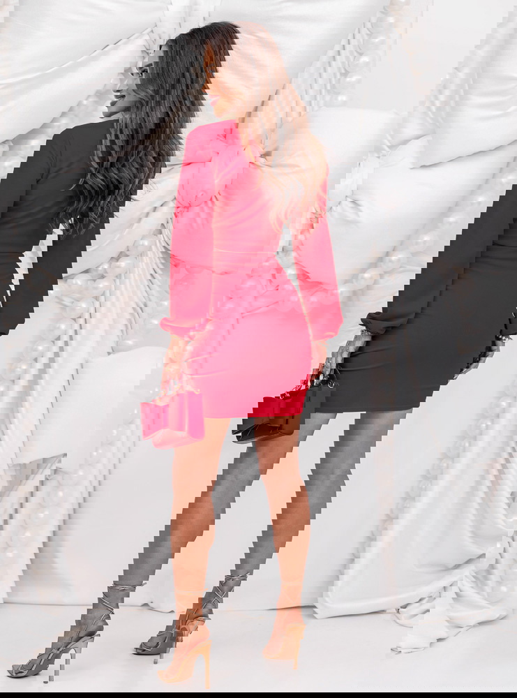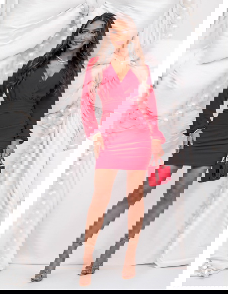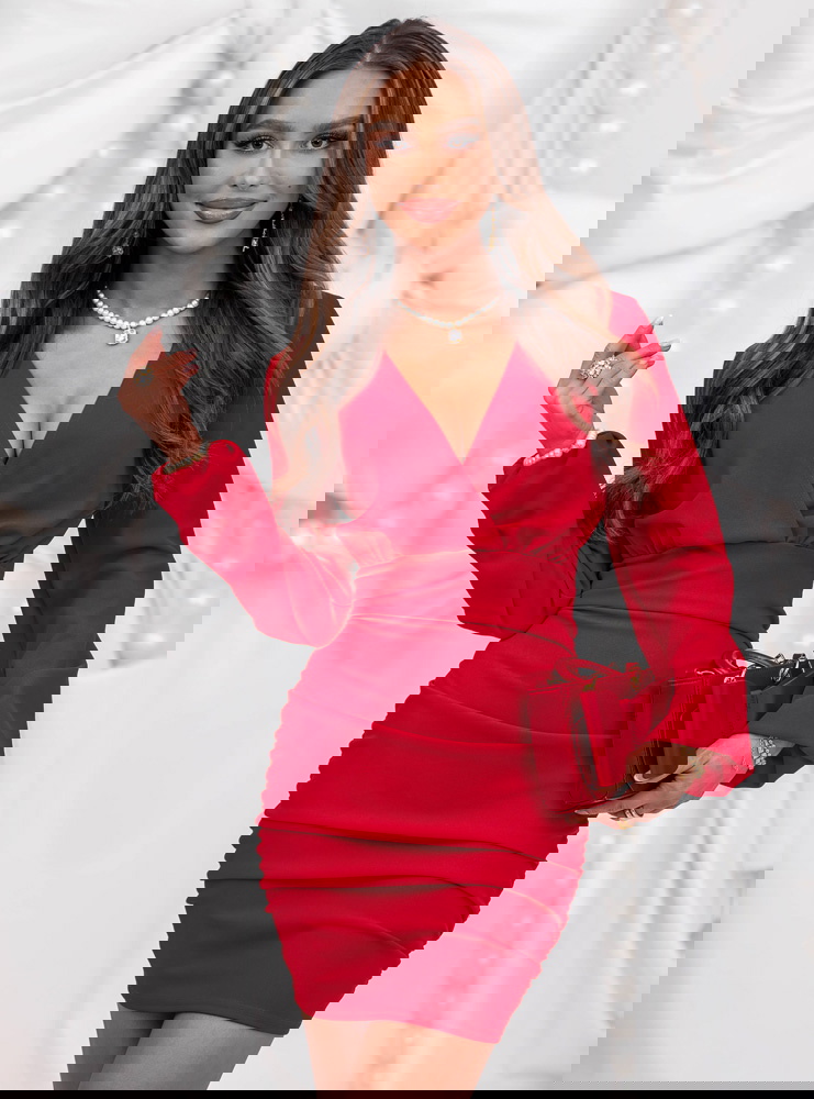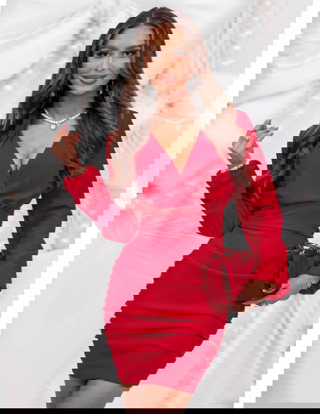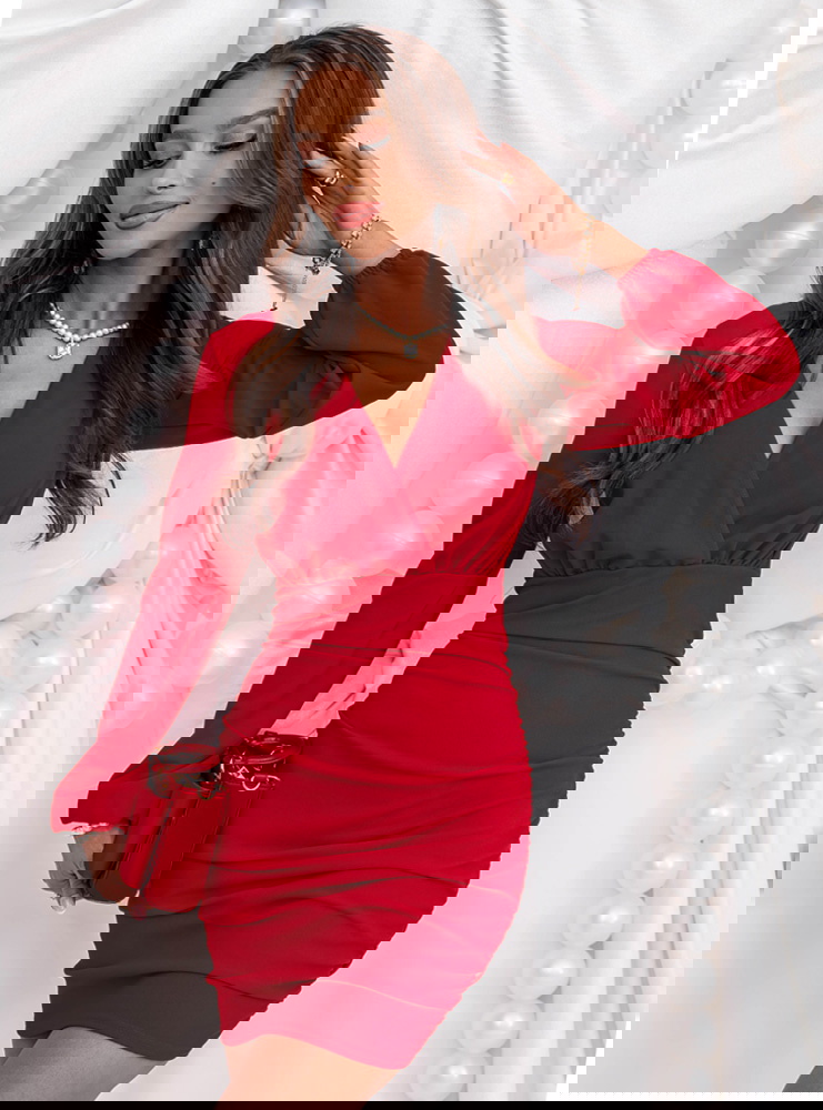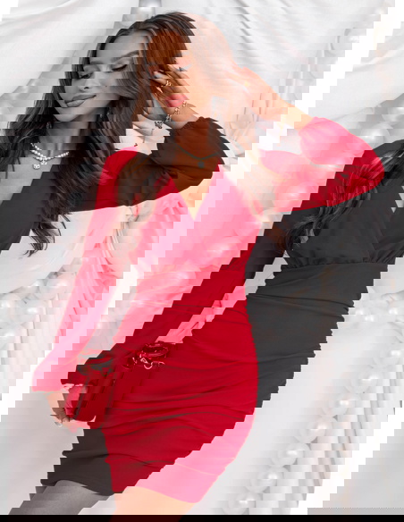 Malinowa sukienka mini na święta z przekładanym dekoltem Jasqua