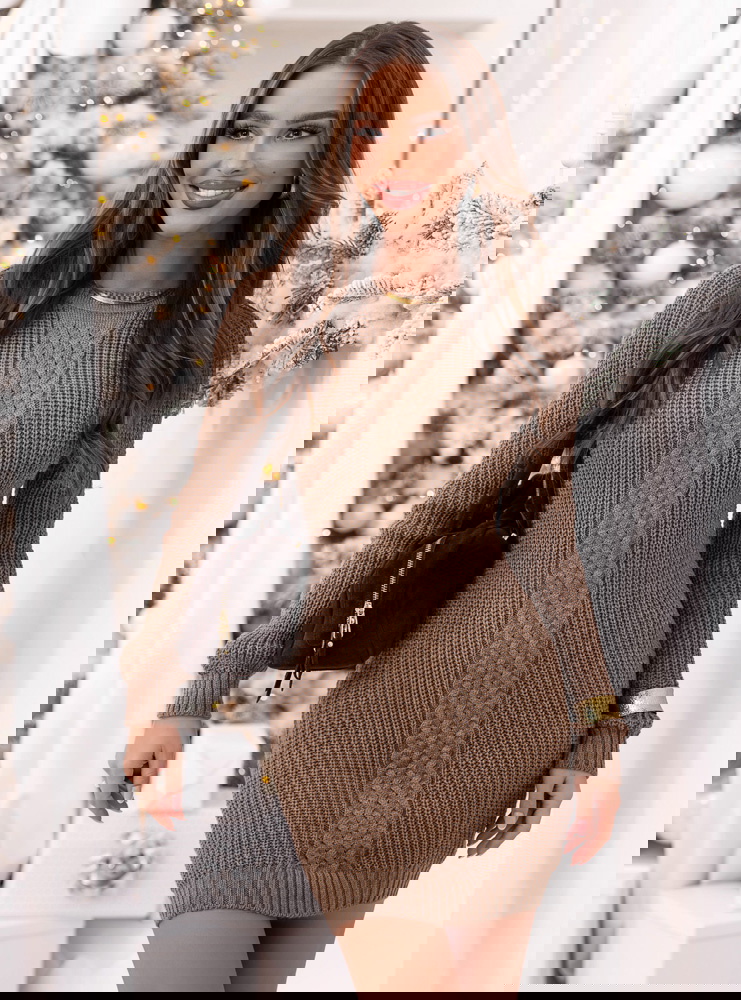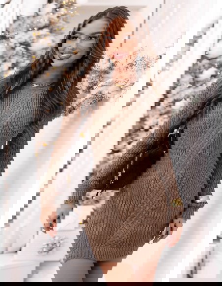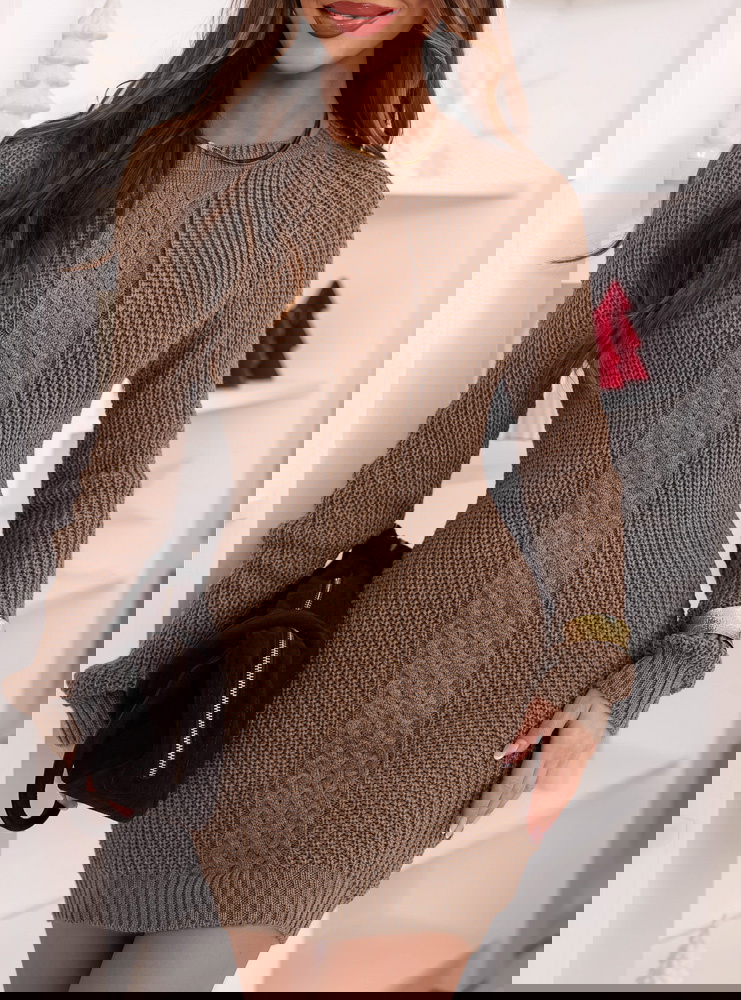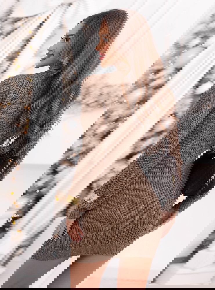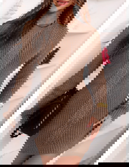 Swetrowa sukienka z warkoczykowym splotem Michellee - mocha mousse wprowadzi do Twojej garderoby przyjemną dawkę jesiennego uroku. Sprawdzi się zarówno na co dzień, jak i w bardziej dopracowanych stylizacjach. Dzięki niej każda jesienna odsłona zyska ciepły, kobiecy i stylowy charakter.