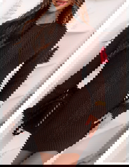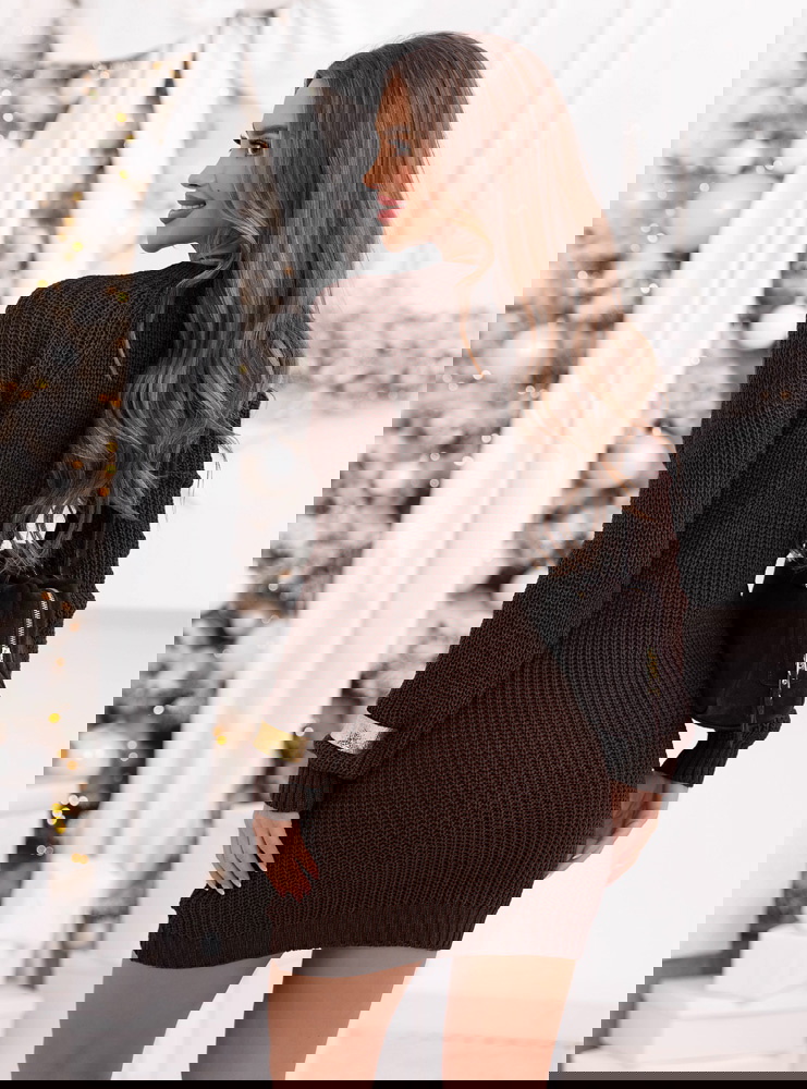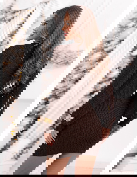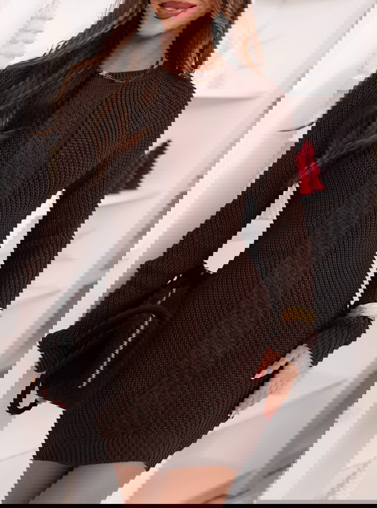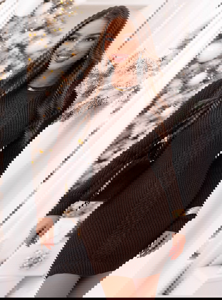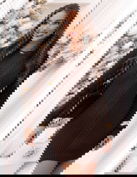 Czekoladowa swetrowa sukienka z warkoczykowym splotem Michellee