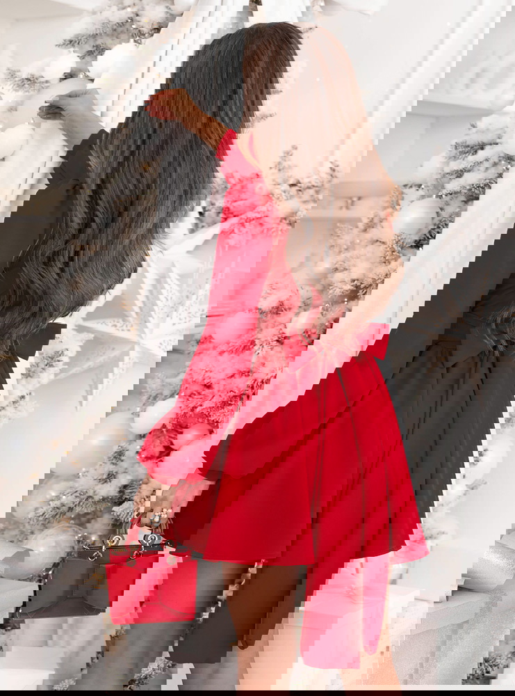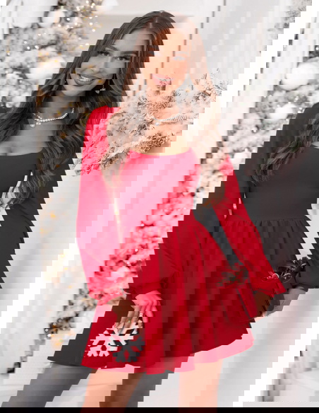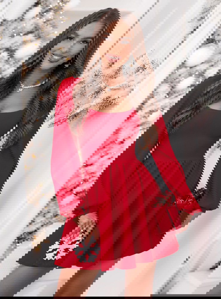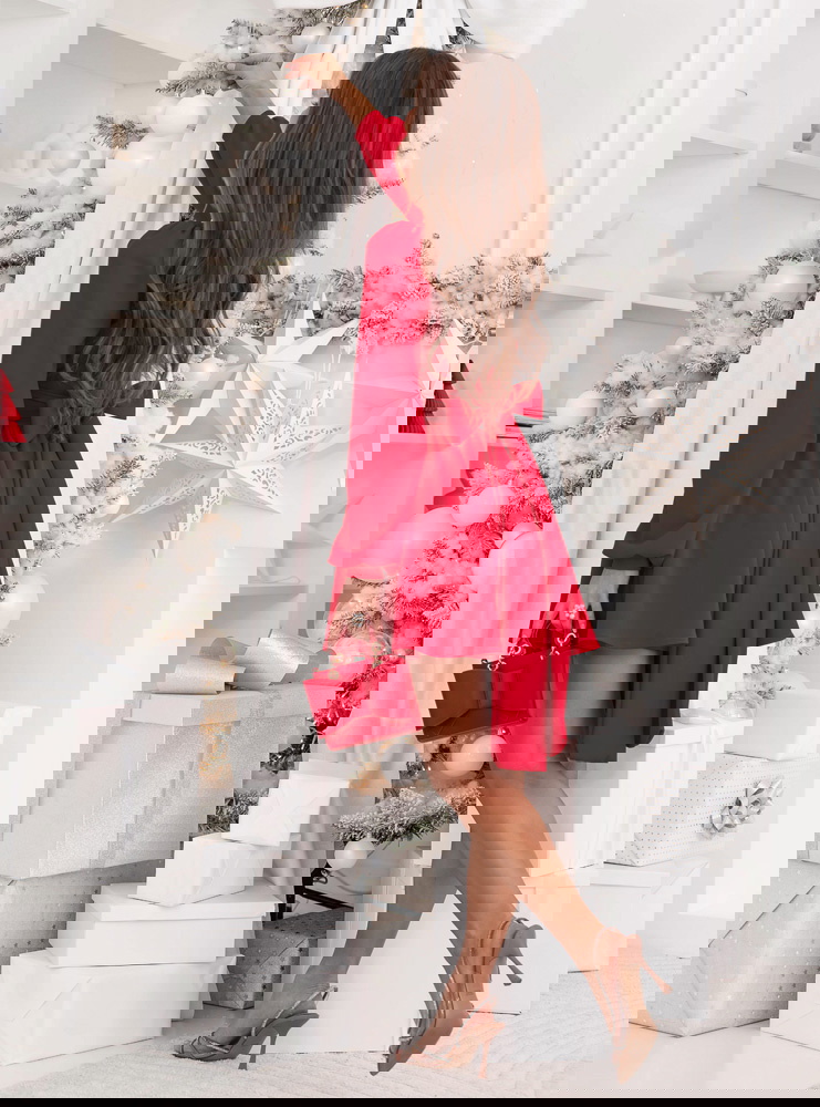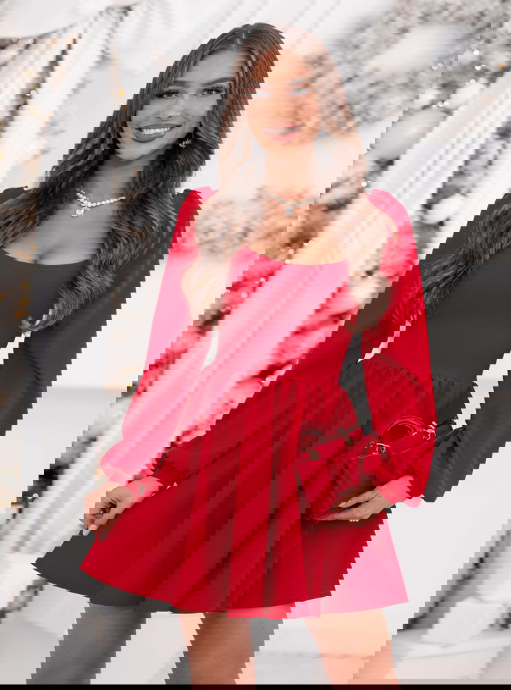 Malinowa rozkloszowana sukienka z wiązaniem Leshawn to propozycja, która od pierwszej chwili zachwyca swoją subtelną elegancją i dziewczęcym urokiem. Jej intensywny, malinowy odcień pięknie wpisuje się w zimową atmosferę, dodając stylizacji ciepła i wyrazistości. Rozkloszowany dół nadaje całości lekkości, tworząc efekt niezwykle kobiecej i harmonijnej sylwetki. Delikatnie dopasowana góra z prostym dekoltem subtelnie podkreśla linię ramion. Długie, lekko bufiaste rękawy dodają całości elegancji i szlachetnego wykończenia. Z tyłu sukienki znajduje się efektowne wiązanie, które nie tylko pięknie wygląda, ale również pozwala dopasować model do figury. To propozycja dla kobiet, które lubią czuć się wyjątkowo, nie rezygnując z wygody. Każdy detal tworzy tu spójną całość, która od razu przyciąga spojrzenia. Sukienka doskonale sprawdzi się zarówno w świątecznych stylizacjach, jak i podczas zimowych spotkań w eleganckim wydaniu. To model, który świetnie podkreśla naturalne piękno i lekkość.