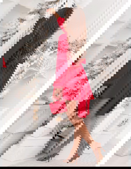 Malinowa rozkloszowana sukienka z wiązaniem Leshawn to połączenie kobiecości, elegancji i lekkości. Jej intensywny kolor doskonale ożywia zimowe stylizacje, nadając im wyjątkowego charakteru.