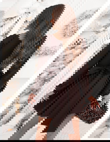 Czekoladowa rozkloszowana sukienka z wiązaniem na święta Leshawn