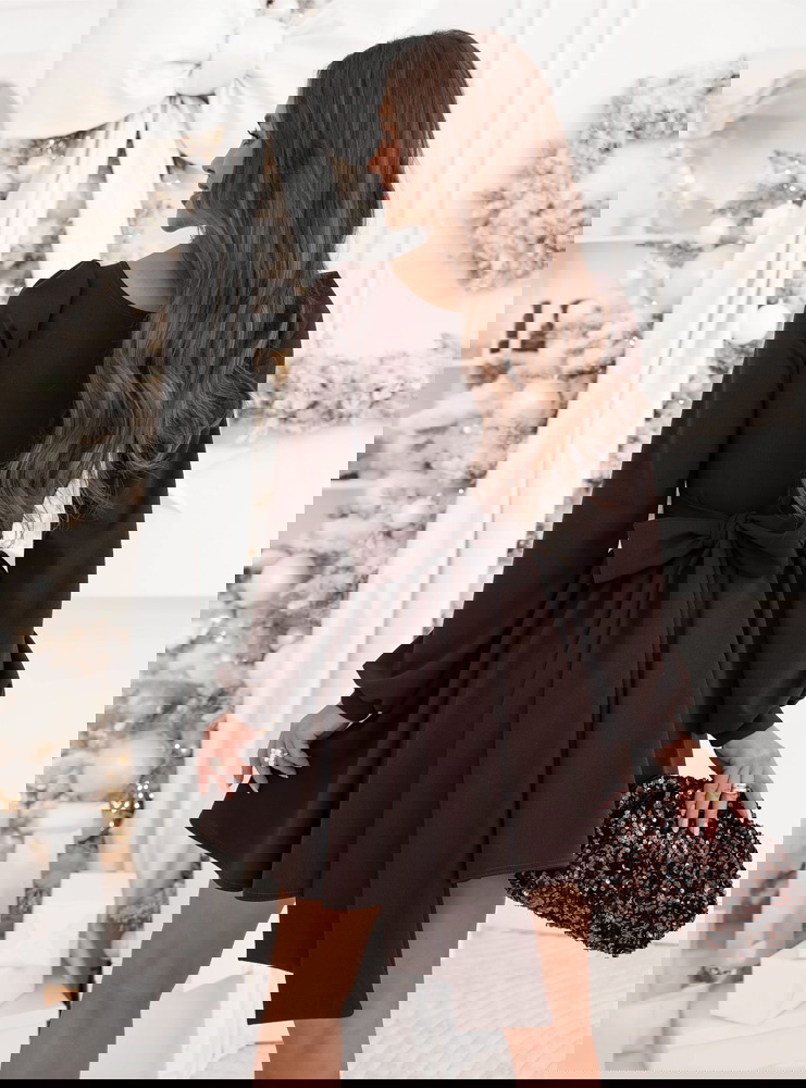 Czekoladowa rozkloszowana sukienka z wiązaniem Leshawn to świetny wybór na świąteczne spotkania i zimowe uroczystości. Doskonale sprawdzi się także podczas rodzinnych kolacji i eleganckich wyjść.