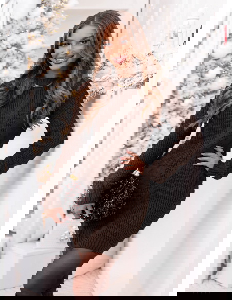 Czekoladowa swetrowa sukienka mini Isabelita to propozycja, która wprowadza do jesiennej garderoby ciepło, kobiecość i subtelną elegancję. Jej głęboki, czekoladowy odcień pięknie współgra z klimatem chłodniejszych dni, tworząc stylizacje pełne przytulnego uroku. Krótka długość nadaje całości lekkości i świeżości, jednocześnie pozostając niezwykle komfortową. Sukienka podkreśla sylwetkę w delikatny, nienachalny sposób, co sprawia, że prezentuje się bardzo zmysłowo, ale wciąż codziennie. To model, który świetnie łączy casualowy charakter z kobiecą formą, dzięki czemu pasuje na wiele różnych okazji. Idealnie dopełni jesienne zestawy, kiedy chcesz poczuć się modnie, wygodnie i stylowo.