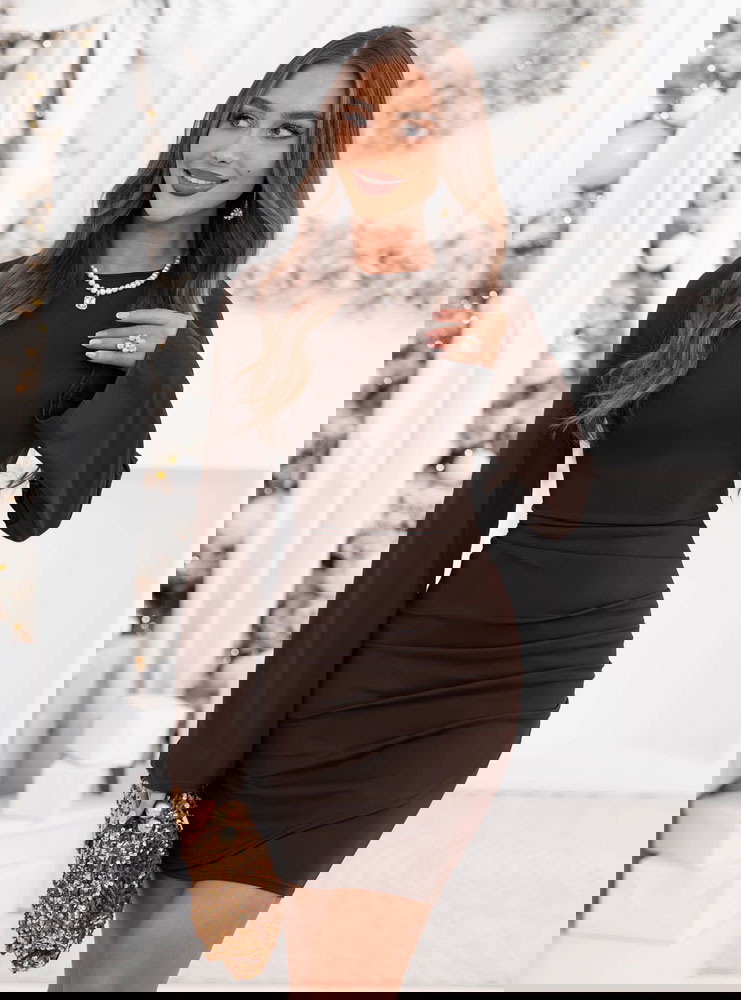 Czekoladowa dopasowana sukienka mini na święta Marilies