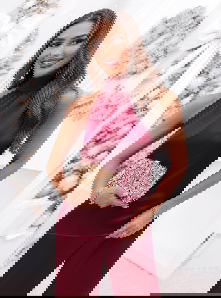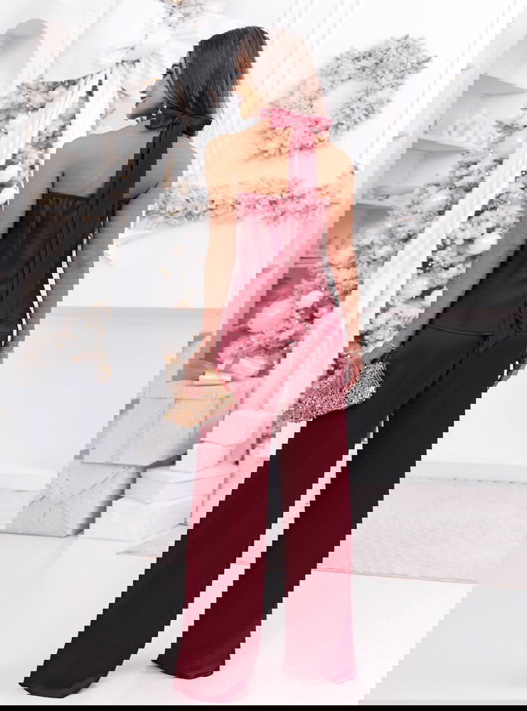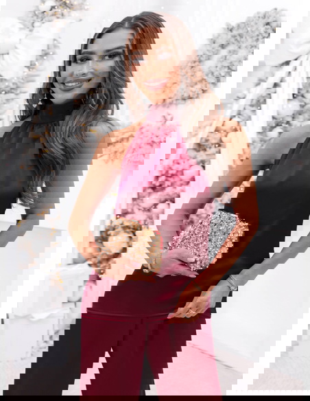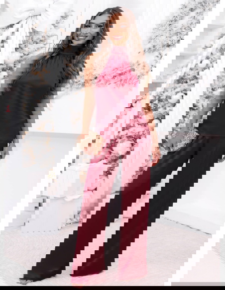 Bordowy satynowy komplet bluzka z wiązaniem i szerokie spodnie Marteisha to propozycja, która od pierwszego spojrzenia zachwyca elegancją, lekkością i wyjątkowym świąteczno–zimowym urokiem. Jego głęboki bordowy odcień prezentuje się niezwykle szlachetnie, dodając stylizacji klasy i ponadczasowego charakteru. Delikatny połysk satyny subtelnie odbija światło, tworząc efekt wyrafinowanej, wieczorowej elegancji. Bluzka z dekoracyjnym wiązaniem na szyi przyciąga uwagę swoim nowoczesnym, a jednocześnie romantycznym fasonem. Szerokie spodnie pięknie wydłużają sylwetkę, nadając całości lekkości i swobodnego, eleganckiego ruchu. To komplet, który łączy wygodę z pełnym szykiem, dzięki czemu idealnie sprawdza się w sezonie pełnym uroczystości. Każdy element został zaprojektowany tak, aby tworzyć harmonijną i efektowną całość. To propozycja, w której bez trudu można poczuć się wyjątkowo i pewnie siebie. Całość wyróżnia się nowoczesnym designem w bardzo kobiecym wydaniu.